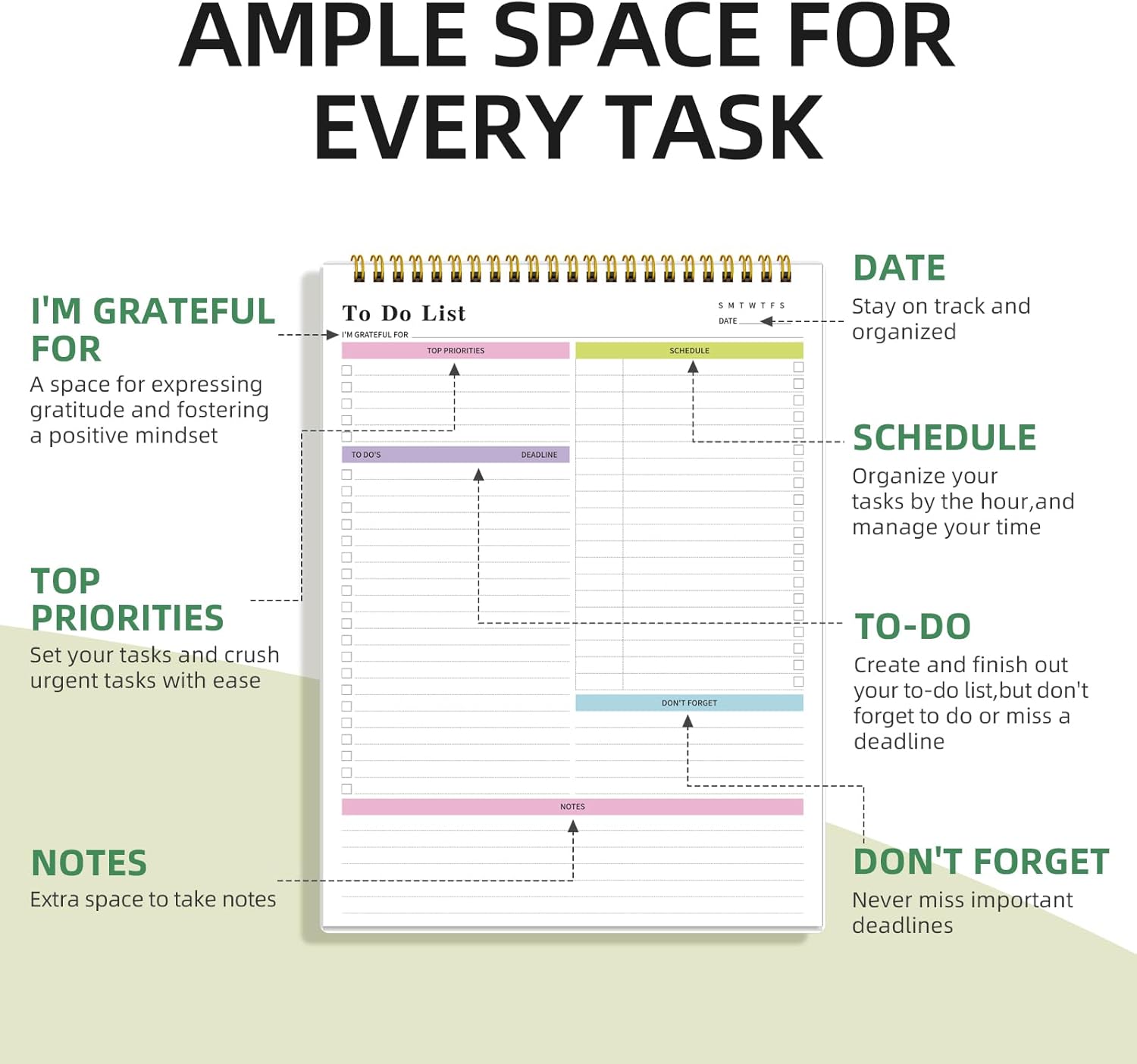- EFFORTLESSLY STAY ORGANIZED- Our To Do List Notepad is designed to offer ample space and multiple sections for task management, focuses on meeting any of your needs, and helps you keep track of everything that needs to be done and prioritize effectively. Can be used for daily tracking of important tasks and prioritizing. Makes you more focused and productive than ever to help you plan your life well.