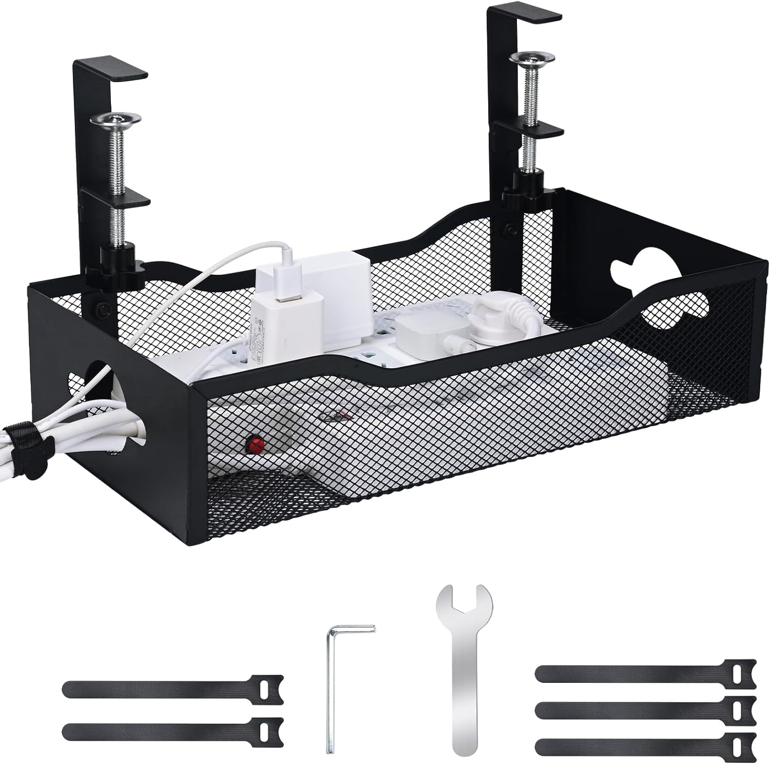- Cable Clutter Elimination & Accessibility-Organize cords effortlessly with 360° access points for USB chargers,cables, and power adapters. The open-grid design allows easy adjustments and additions, while integrated cable ties (included) keep wires neatly bundled. Ideal for maintaining a clean, professional environment and reducing tripping hazards.