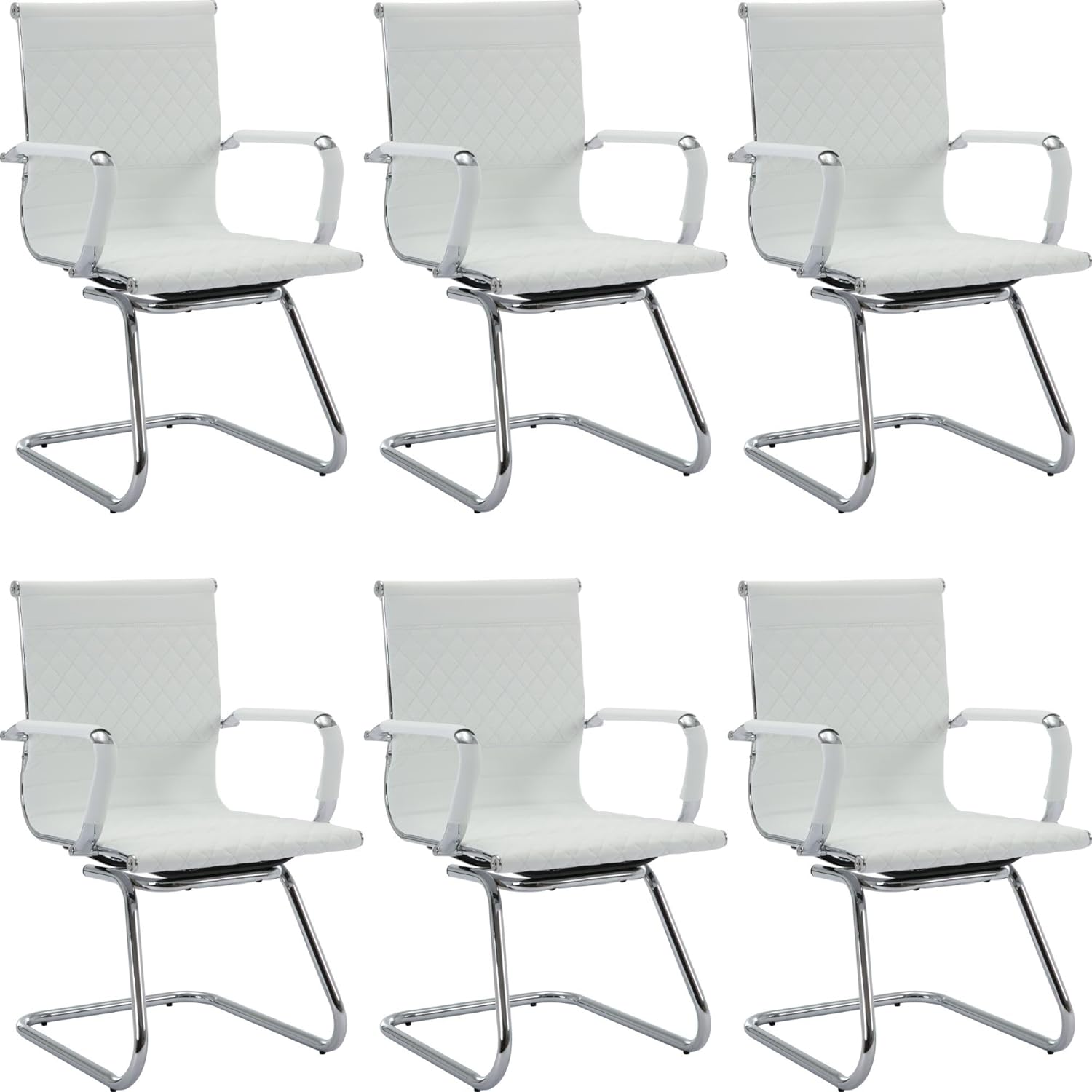 Office Guest Chairs - Set of 6 Modern PU Leather Desk Chairs for Reception, Waiting, and Conference Rooms - Mid Back, White