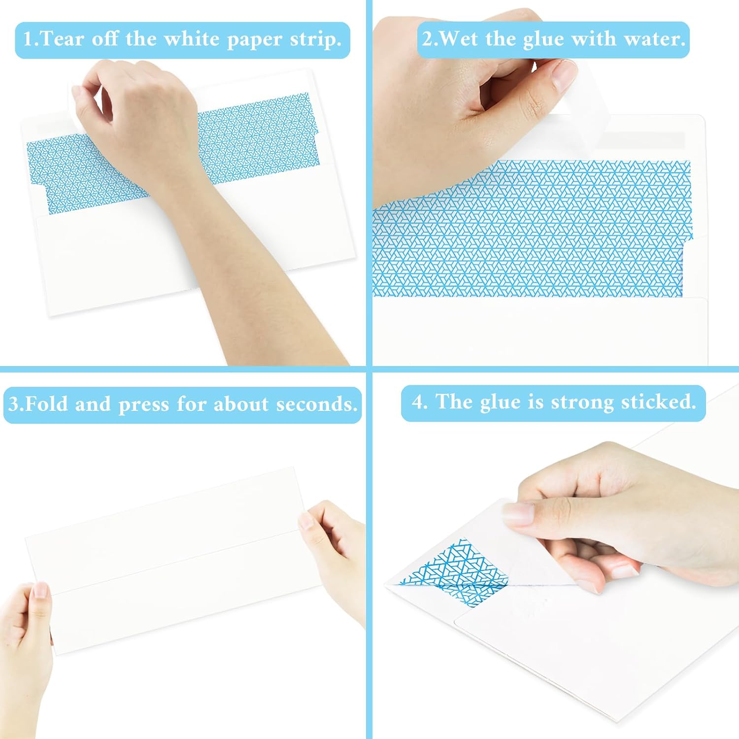 - 【Easy to Use】Features a windowless blank design for easy printing or labeling. When using them, wet the glue on the sealing area of envelope, then fold the sealant and hold it for about a few seconds. In addition, the surface of the business envelopes is blank, you can print or draw your favorite patterns and words on it, or you can write the recipient's name by hand, making the envelope more personal and at the same time let the recipient feel your heart