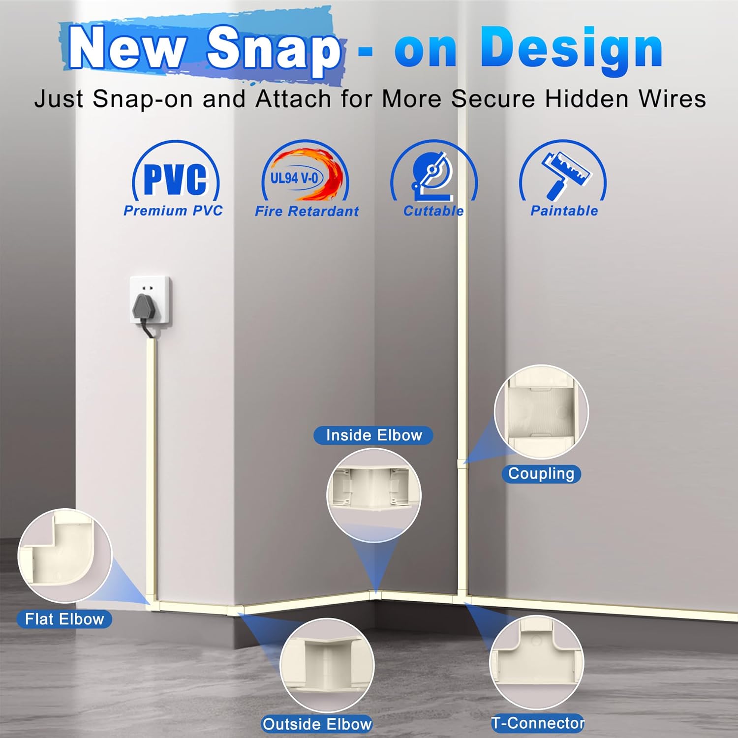 - Superior Quality Cable Hider Kit for Wall Mounted TV: This wire hider is made of PVC material, a strong self-adhesive backing, and new snap-on fittings for connection. Our cord cover has better sturdiness, durability, and is flame retardant. It hides all your wired devices, eliminates the danger of wires in your life, and provides a safe space for your family and pets.