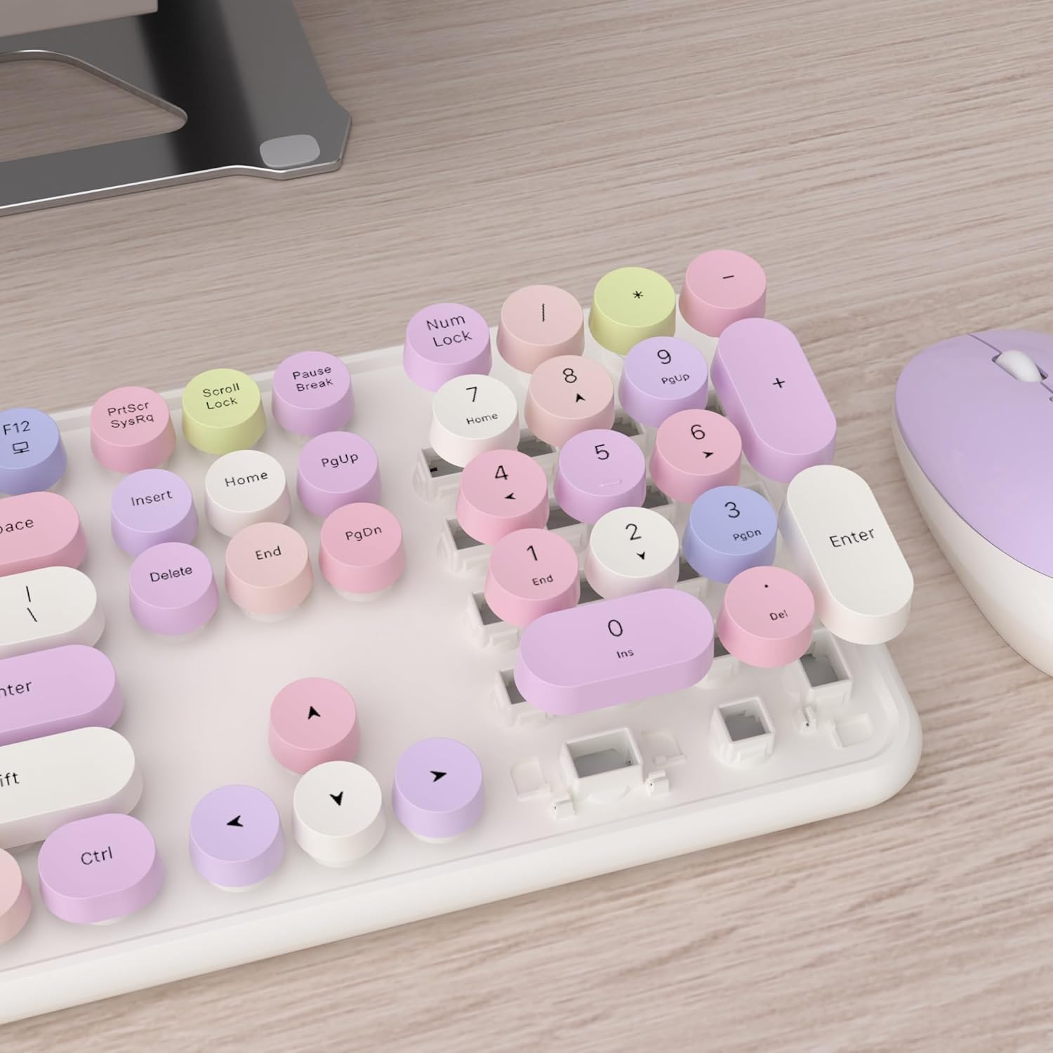 UBOTIE Colorful Computer Wireless Keyboards Mouse Combos, Typewriter Flexible Keys Office Full-Sized Keyboard, 2.4GHz Dropout-Free Connection and Optical Mouse (White-Colorful)