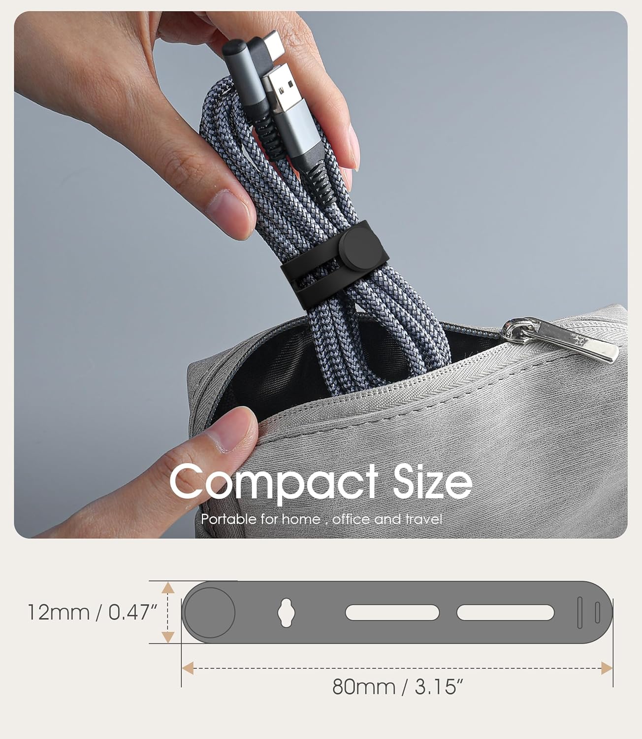 - 【More Suitable Size】3.15in * 0.47in, more suitable for organizing various cables such as USB cables, headphones, mice, audio and network cables, etc. No need to worry about messy cables!