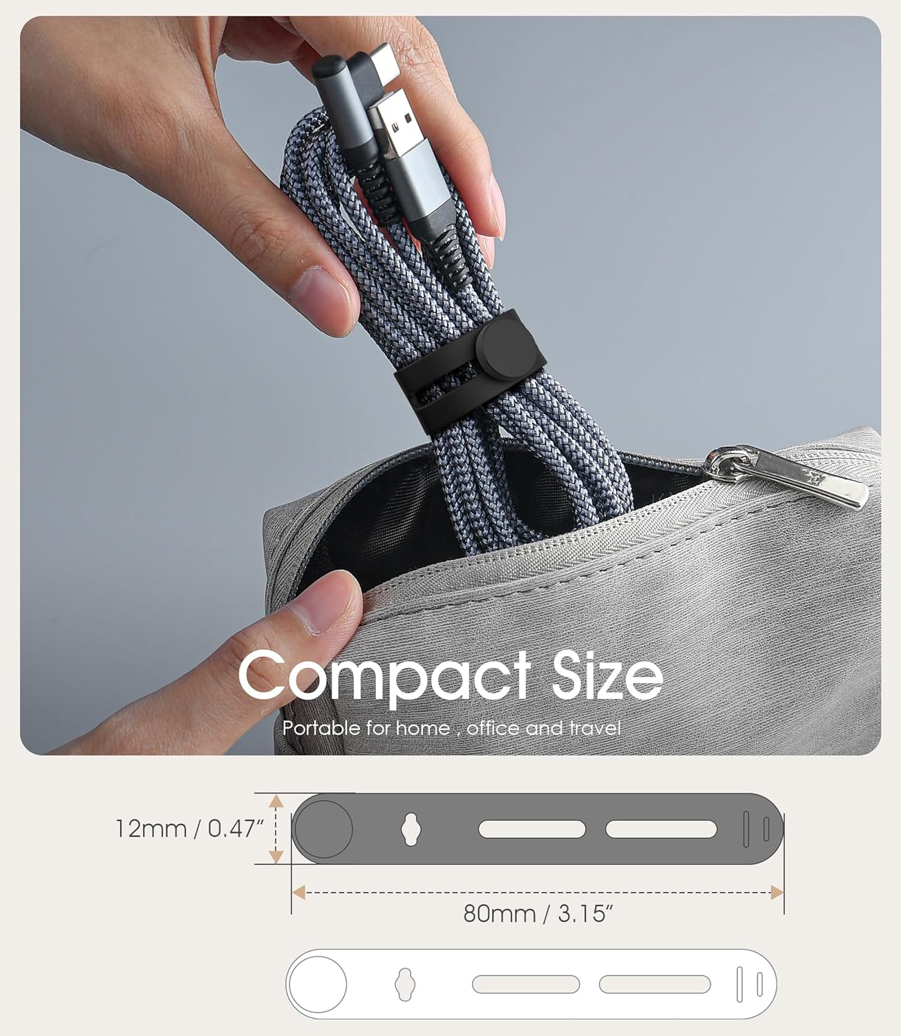 - 【More Suitable Size】3.15in * 0.47in, more suitable for organizing various cables such as USB cables, headphones, mice, audio and network cables, etc. No need to worry about messy cables!