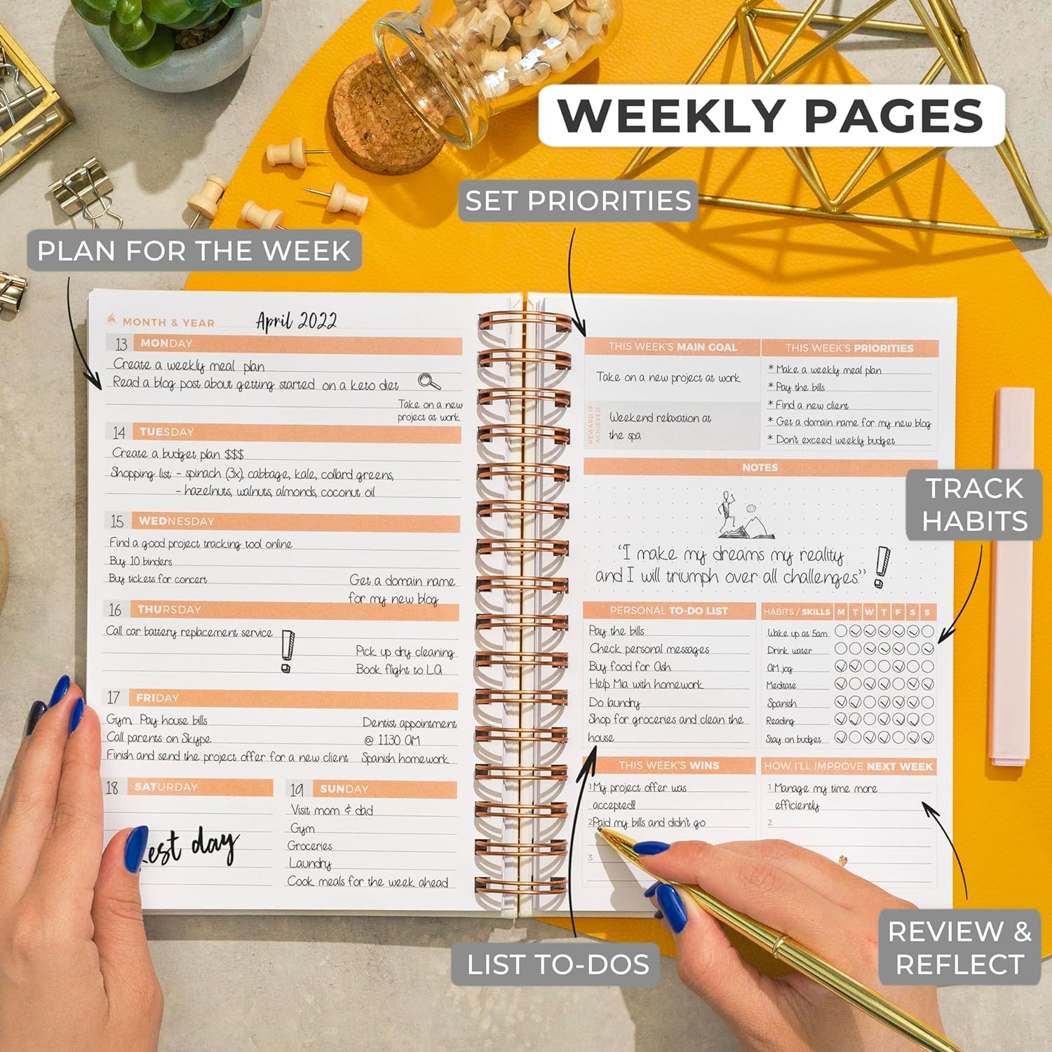 - ✓ GET ORGANIZED & ACHIEVE YOUR GOALS – This hardcover weekly planner will help you create a vision for your life, define long-term life goals, and incorporate these goals into your monthly, weekly, and daily agenda.