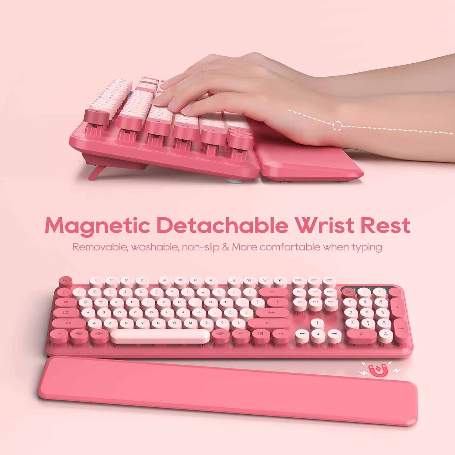 - Special Feature : Magnetic Detachable Hard Wrist Rest & Waterproof, Splash-proof Design, Removable Floated Round Keycaps & Foldable Tilt Legs, Wireless Typewriter Keyboard & Auto Sleep Mode Magnetic Detachable Hard Wrist Rest & Waterproof, Splash-proof Design, Removable Floated Round Keycaps & Foldable Tilt Legs, Wireless Typewriter Keyboard &β¦ See more