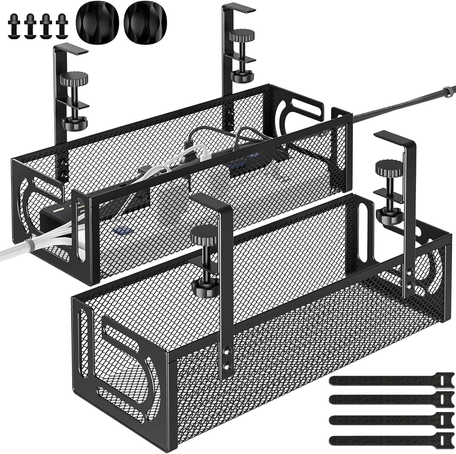 - 【No Drilling Installation】Assembling Foellstoe cable management box is a breeze and takes only 3 minutes or less. The side clamps easily grip the edge of your desk, passing through the side holes, and the basket secures any excess cables.