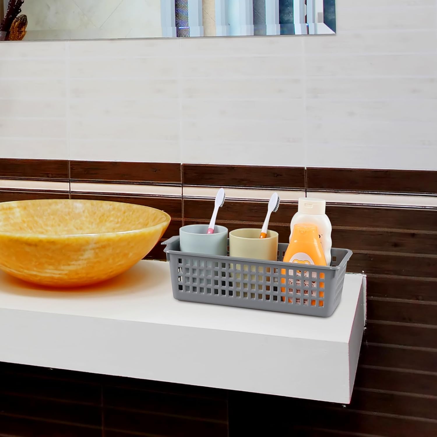- The hollow mesh basket body design keep the items in the basket in a refreshing state, suitable for storing toiletries in the bathroom or storing condiment bottles in the kitchen