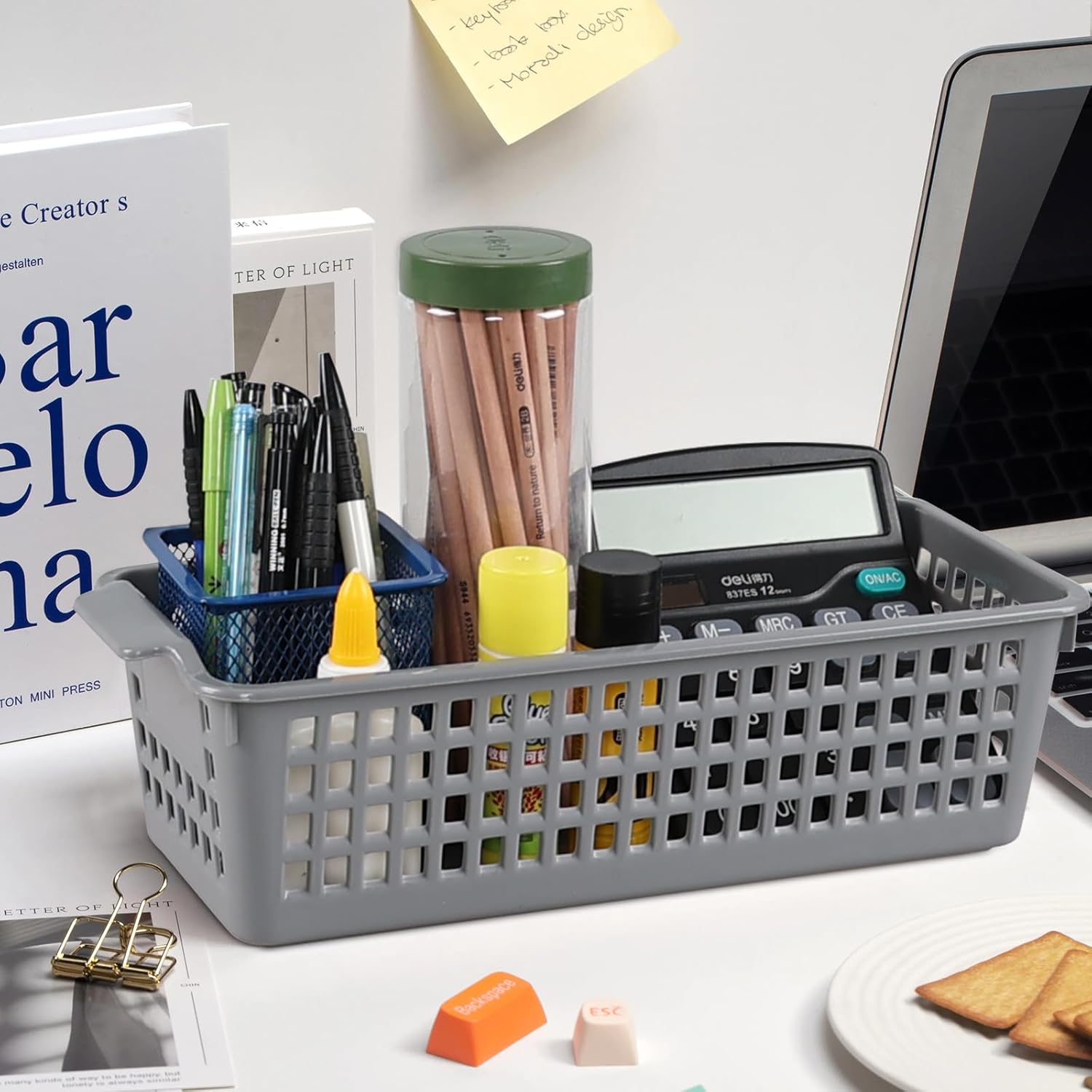- This slim sized basket is perfect for placing on countertops, desktops, and drawers anywhere, organizing small items such as cutlery, seasonings, stationery, pens, remote controls, combs, screwdrivers etc.