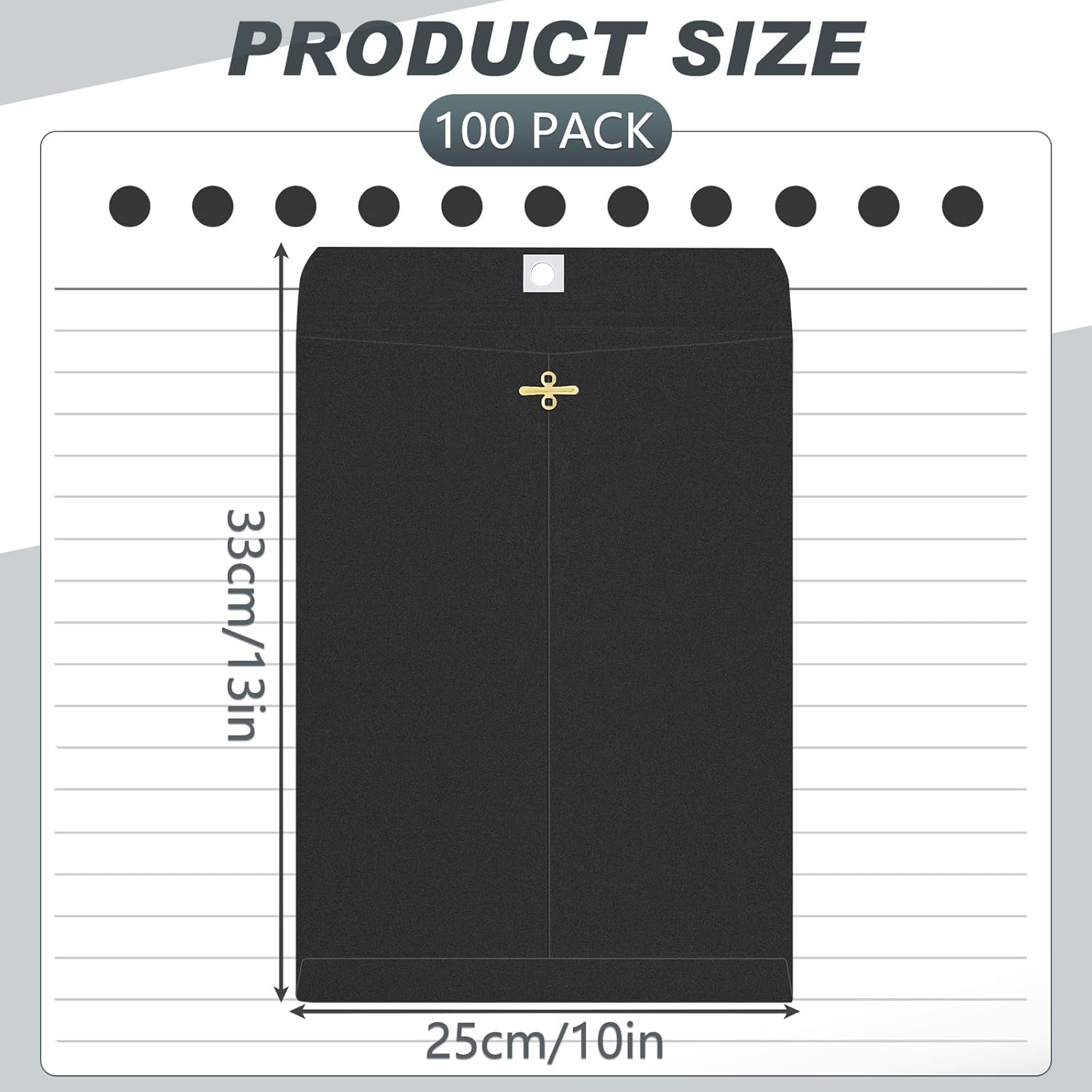 Geyee 100 Pcs Clasp Manilla Envelopes 10 x 13 Inch Gummed Colored Envelopes for Storing or Mailing for Home Office Business Supplies(Black)