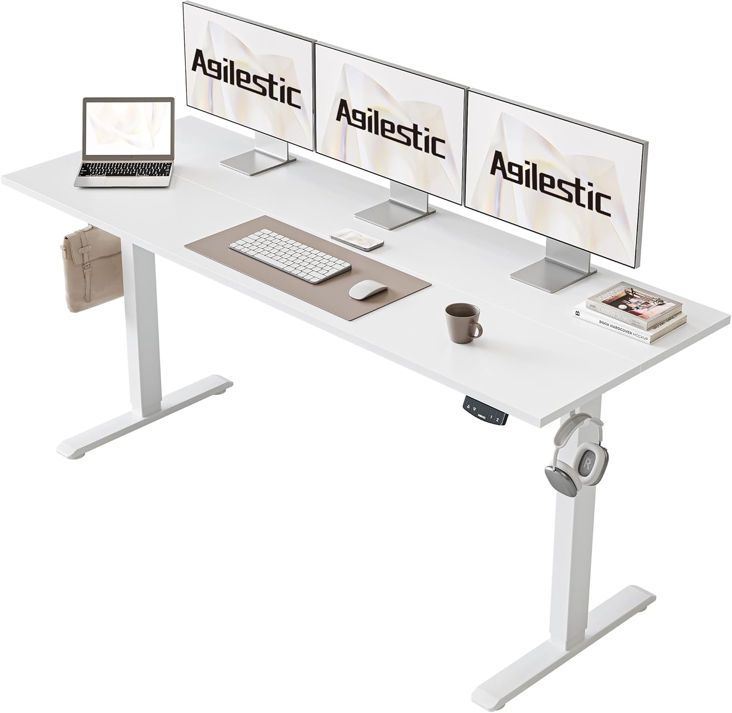 Agilestic Electric Standing Desk, Large 63 x 24 Inches Height Adjustable Desk, Sit Stand up for Work Office Home, Ergonomic Rising Computer Table with Memory Preset, White