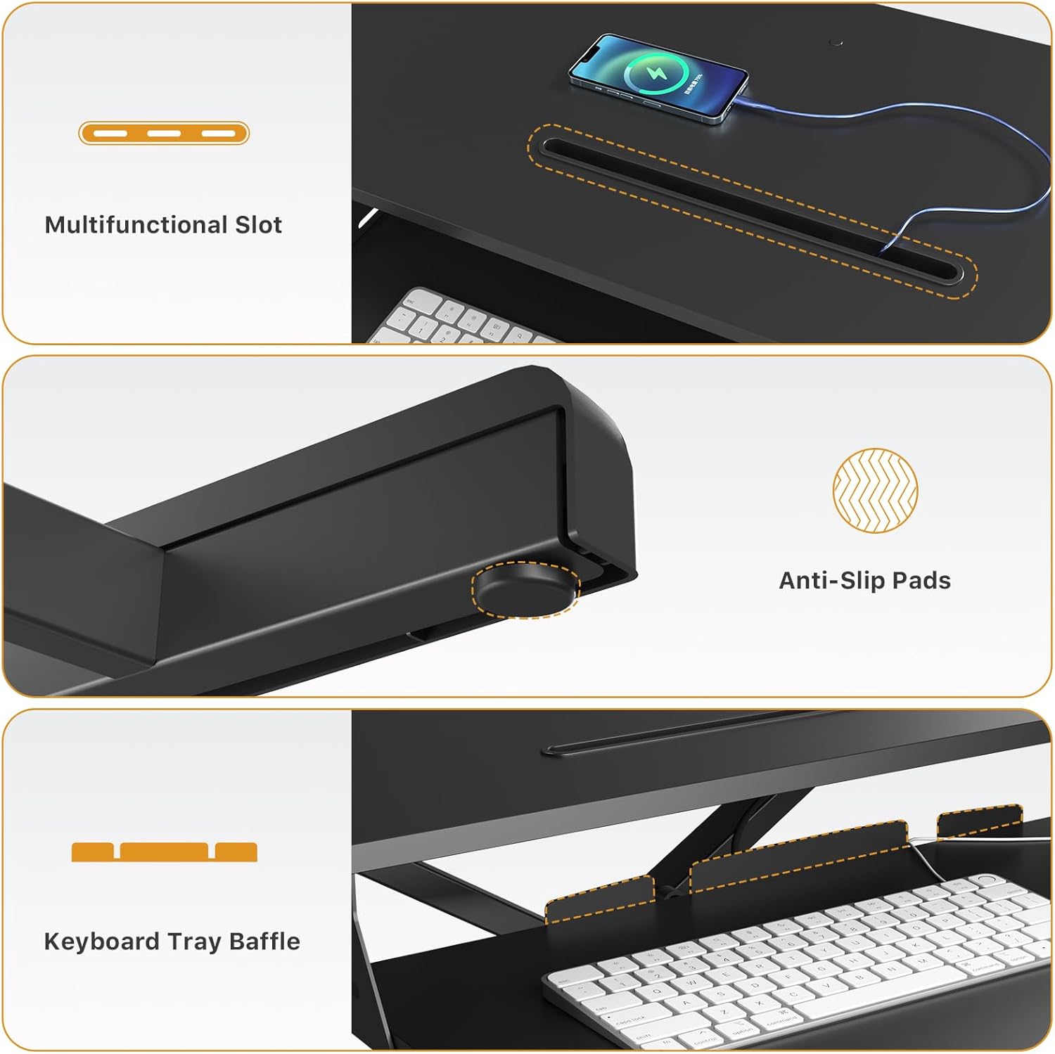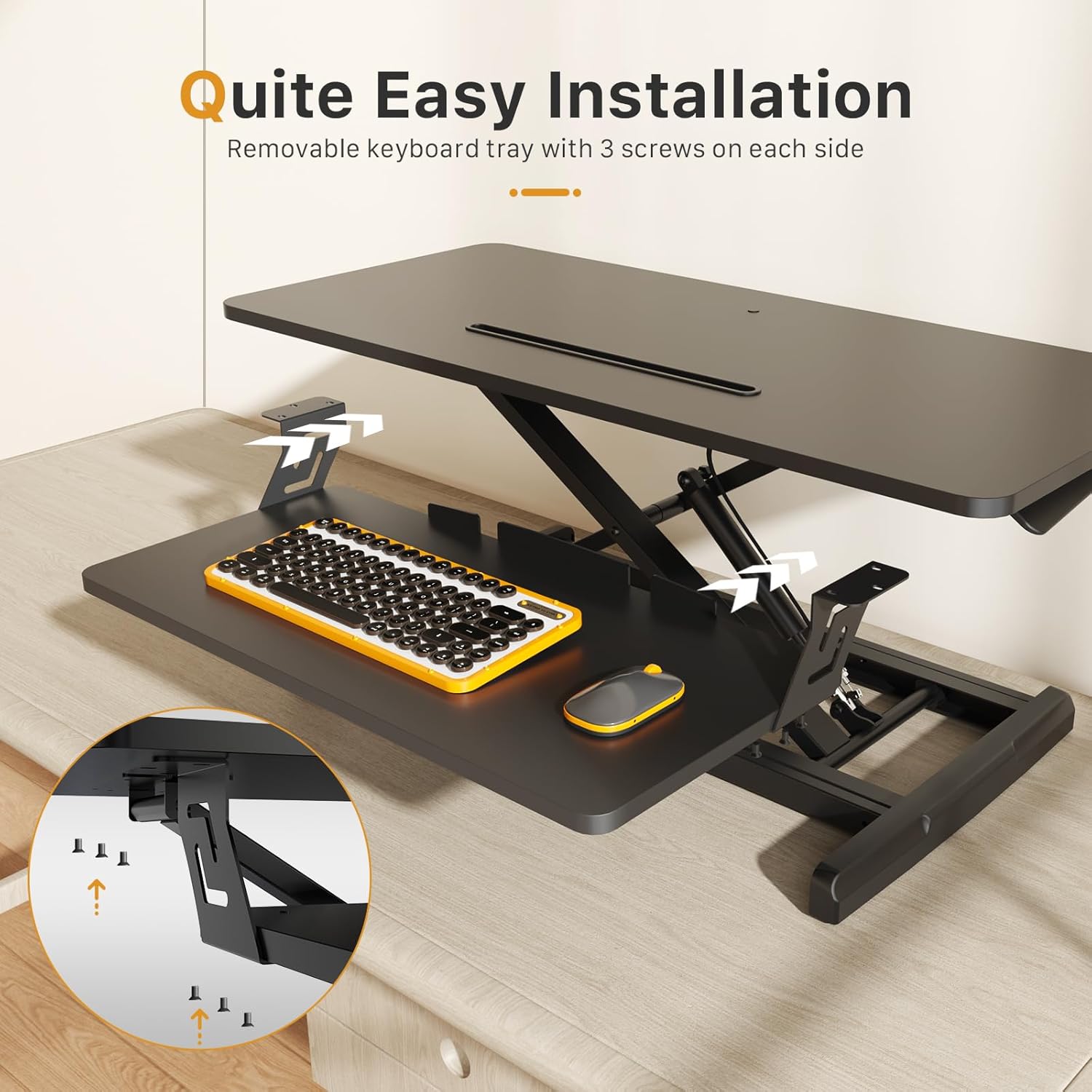 - Very Minimal Assembly: The riser comes with almost everything assembled. Just place on your existing desk, easy 2-steps keyboard tray installation, and start organizing your workstation