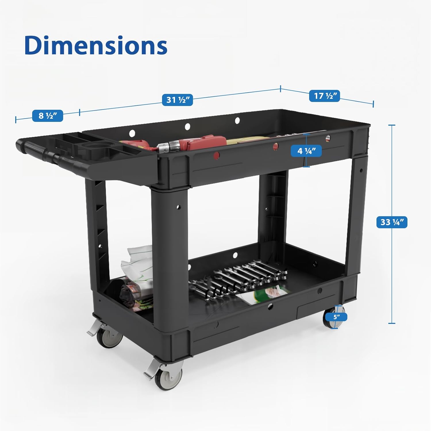 Commercial Grade 2 Shelf Utility Cart with Wheels - Rolling Tool Trolley, Heavy Duty Service Push Cart for Business Warehouse Office Restaurants Ecommerce Garage
