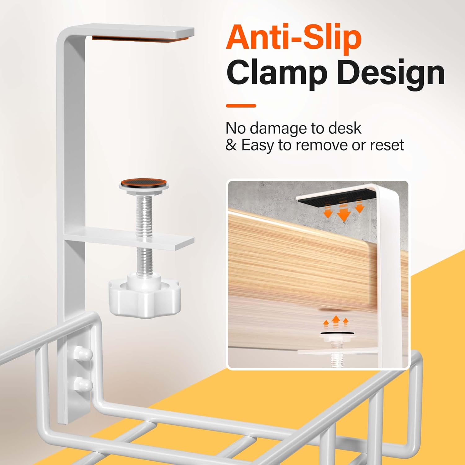 - 👍【No Damage to Desk】 Unlike others screw installation, our no drill under desk cable management tray can be hanged directly to desk frames and removed easily as your need. Cable trays come with anti-scratch mats, effectively avoid the clip to scratch the desktop. Prefect to install with clamp on the any wood, glass, or any material of your desk.
