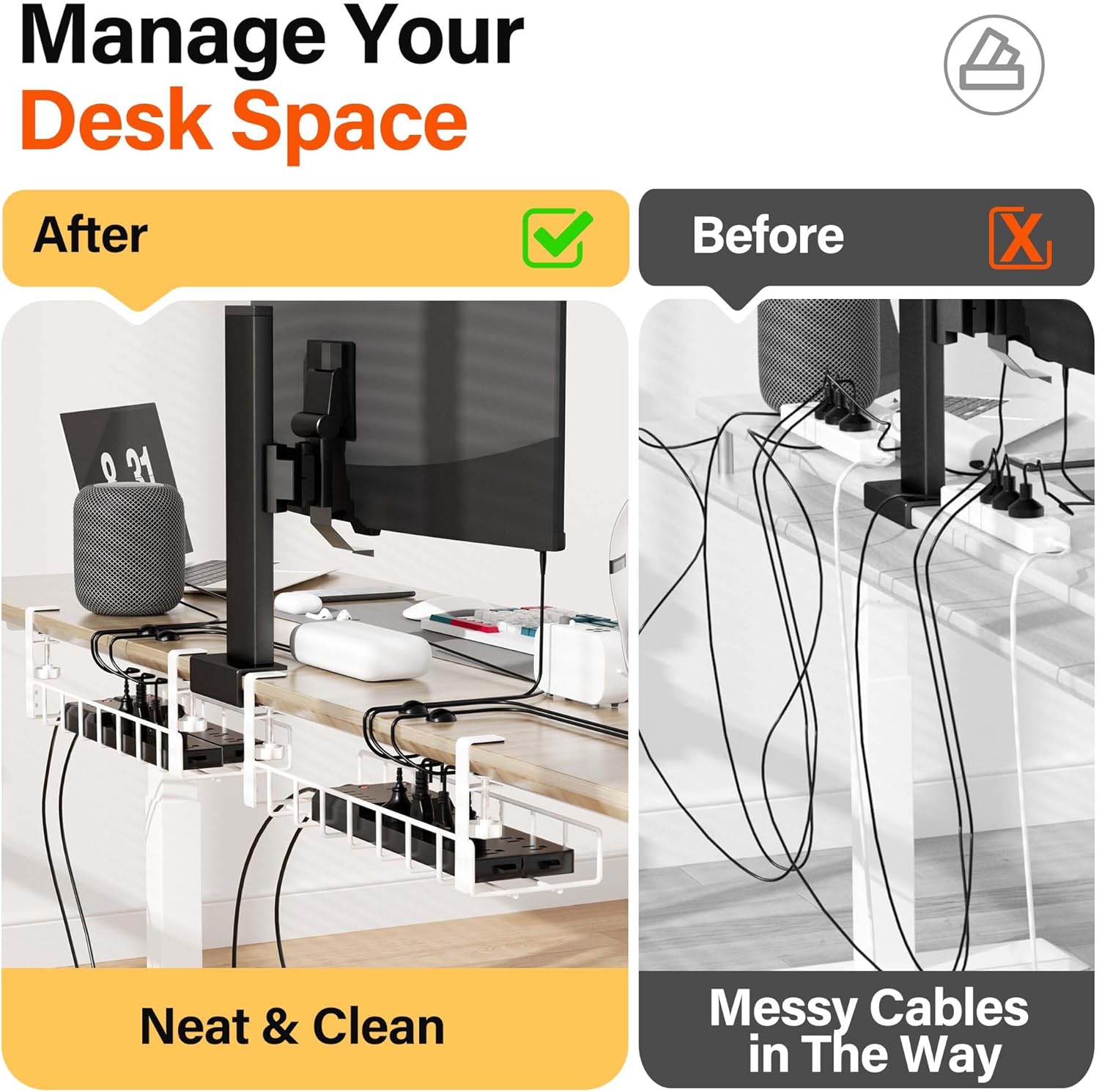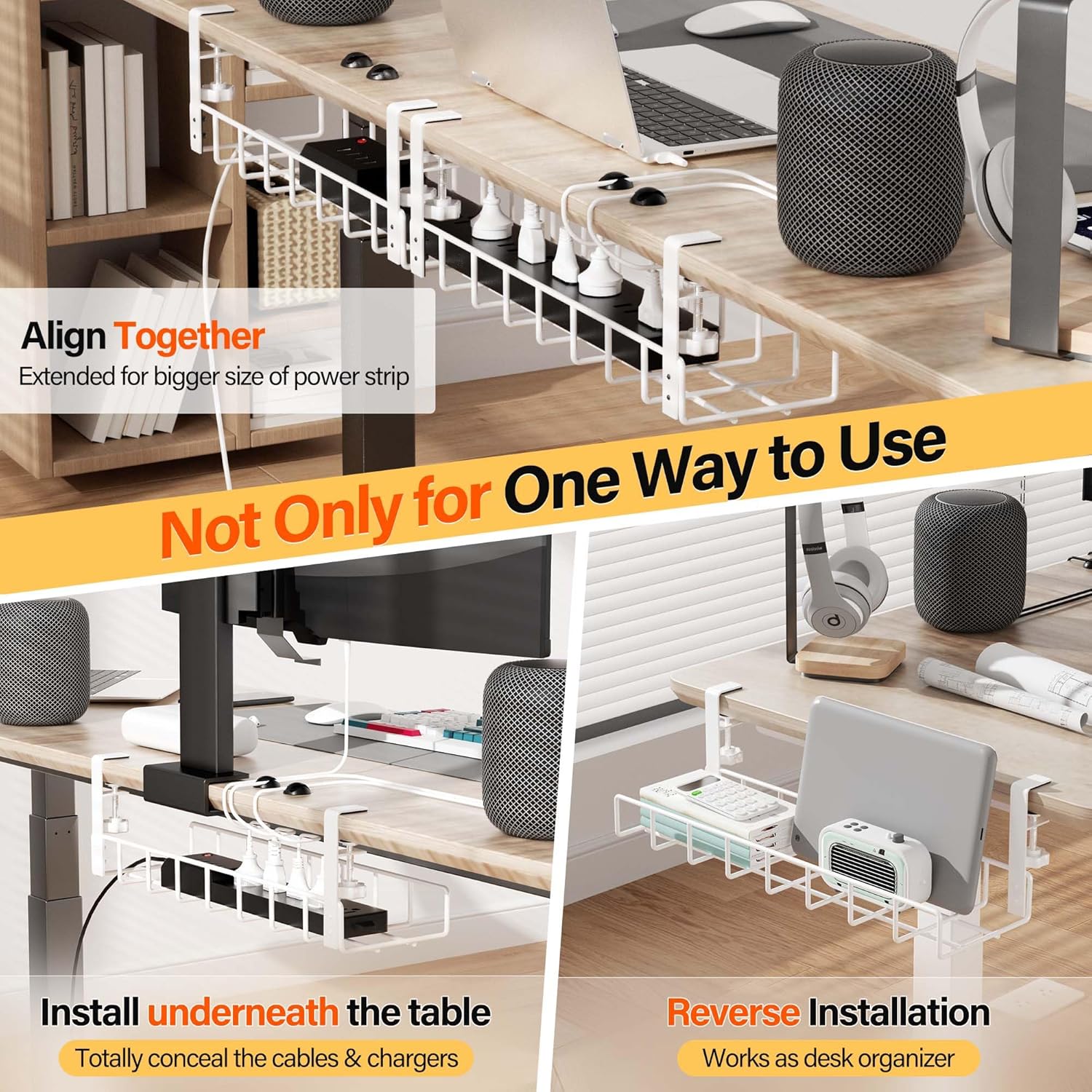 - 👍【What You Will Get 】Great value under table cable management kit contains 2 cable trays, 4 cable clips and 4 cable ties. When you place 2 racks align, you will have a extra long 31.4" under desk cable management tray. Suitable for long power strips and multiple devices. This computer cord organizer is great for you not only around your desk table, but also good to be used in the kitchen and outdoors. Tidy and beautify your office and home.