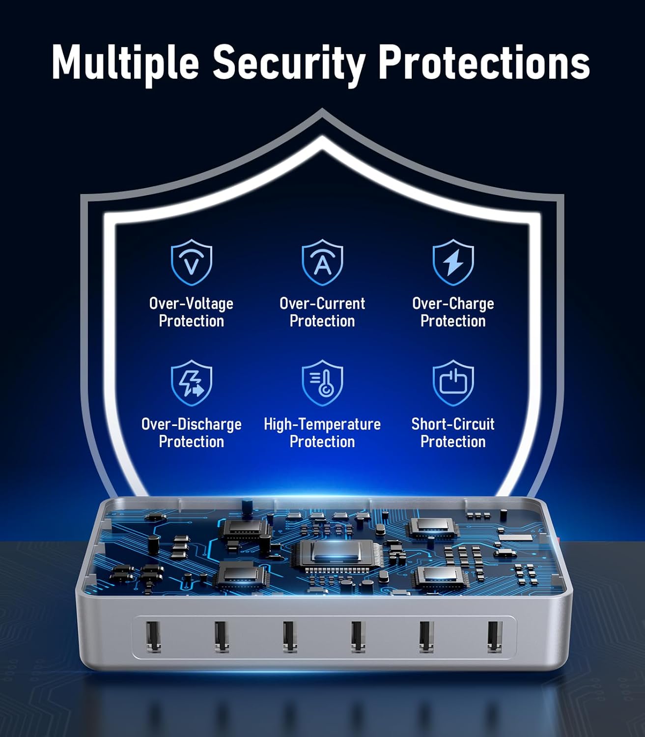 - 【Multi-Scenario Application】The charging station for apple devices has 6 smart USB ports that put all your devices in one place.Each port provides up to 5V/2.4A of current.The charging dock has an auto-detection feature that assigns the perfect amount of power to each charging device.Perfect for home, office, school, restaurant, and hotel use, it can accommodate all your family's devices