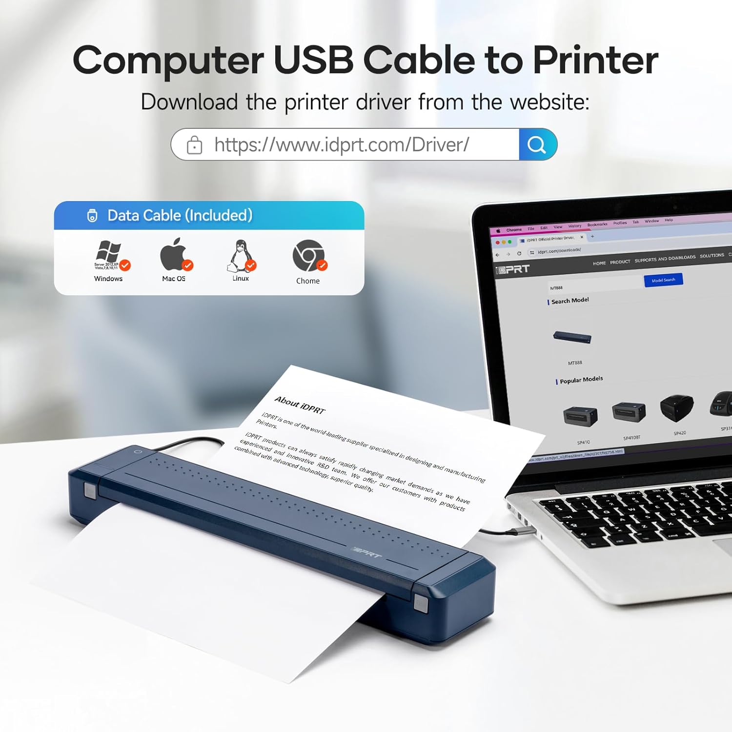 - 【PORTABLE WIRELESS PRINTER】iDPRT MT888 Mobile Bluetooth Printer is a portable wireless printer, weighing only 2 pounds, with a size of 12.2 inches x 2.5 inches x 1.56 inches, very light and portable, and can be easily put into a handbag or briefcase. It can print anywhere to meet the user's various printing needs, whether it is travel, business trip, school, car, home or office, it is a reliable companion.