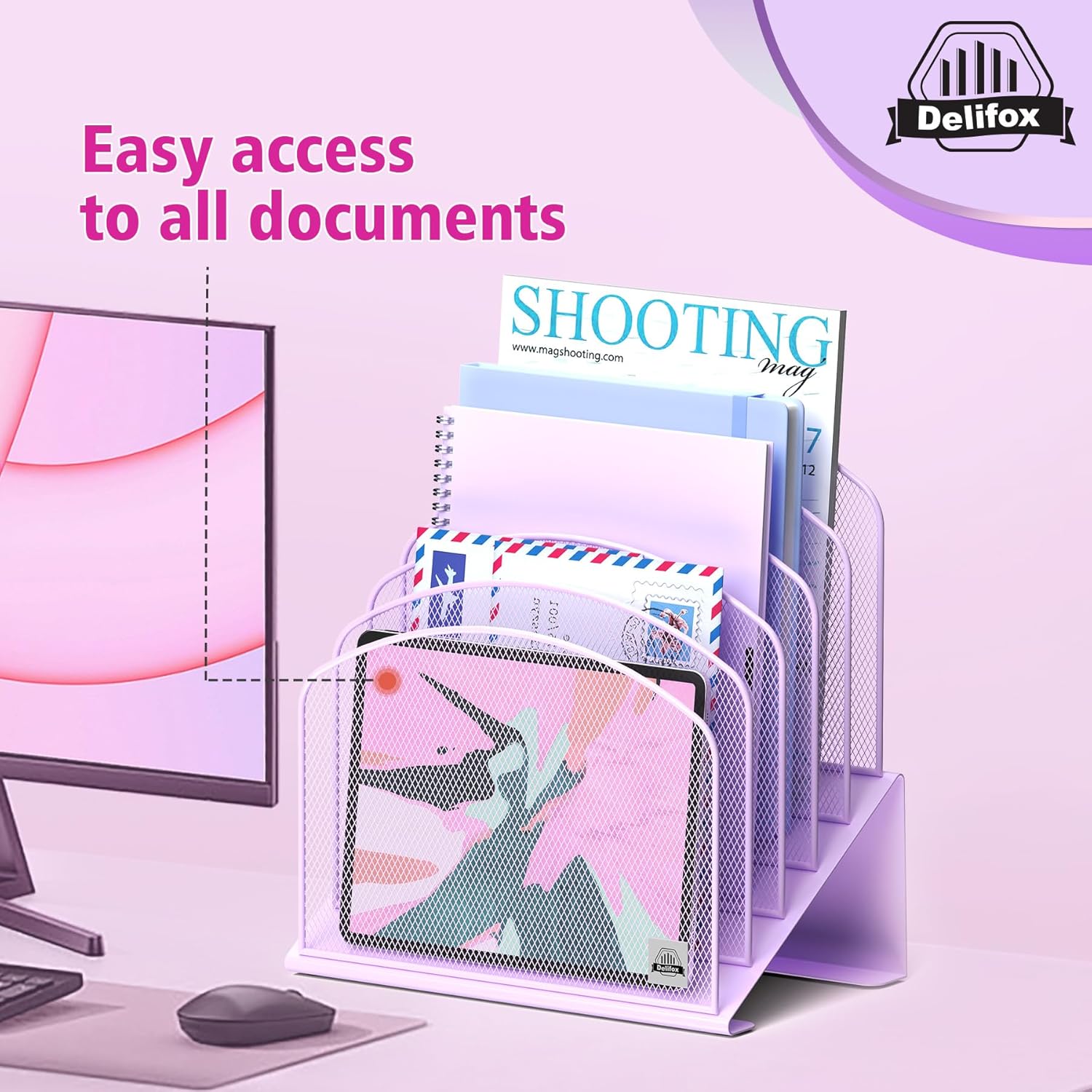 - ▶ SUFFICIENT SPACE FOR STORAGE. Delifox 5-compartment desktop file organizer is large enough to hold and classify many document or papers so as to eliminate worry of document run-off and keep track of files, folders, and other important papers