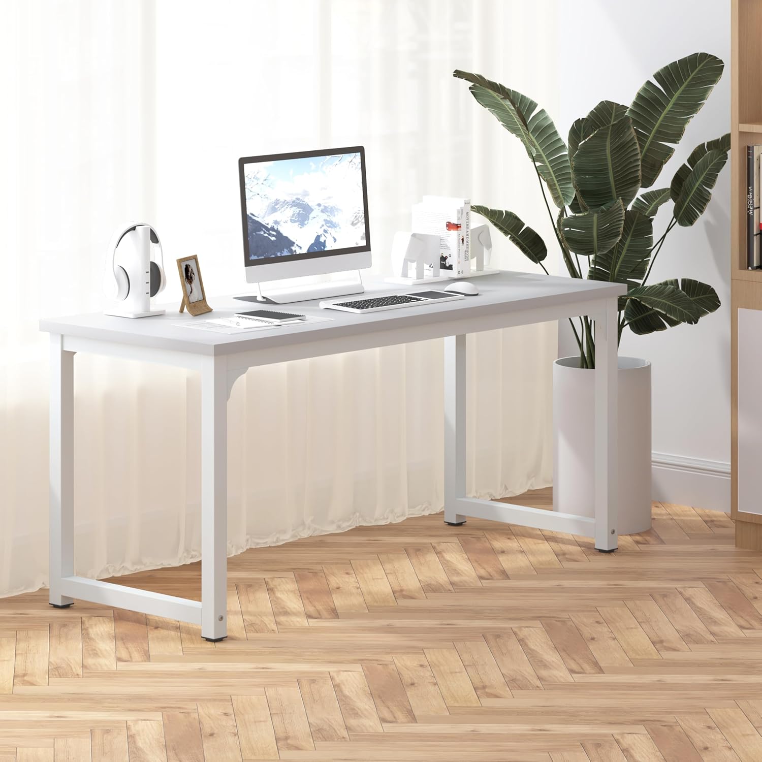 - Sturdy Steel Framf & Thicker Desktop:1.97" extra strong thicker steel legs provide additional stability. Total weight capacity 800 lbs or sturdiness. Desktop made of 1" thicker MDF, waterproof, anti-scratch and easy to clean. Modern computer desk comes with adjustable leg pads, keeping your desk stable in any circumstances. Size: 63”L x 23.6”W x 29.5”H.