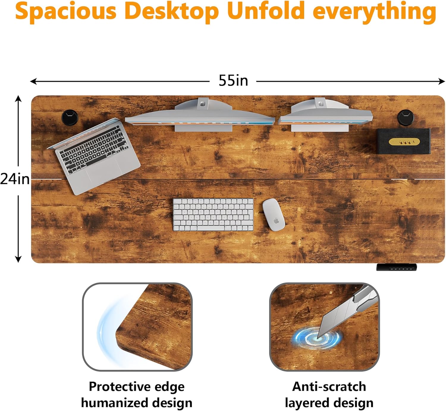 - 【Durable & Quiet Motor】– Designed for peak performance, our electric standing desk boasts a high-quality motor that delivers smooth, quiet height adjustments from 27.9" to 46.8", while the advanced anti-collision system ensures safe operation without interruptions