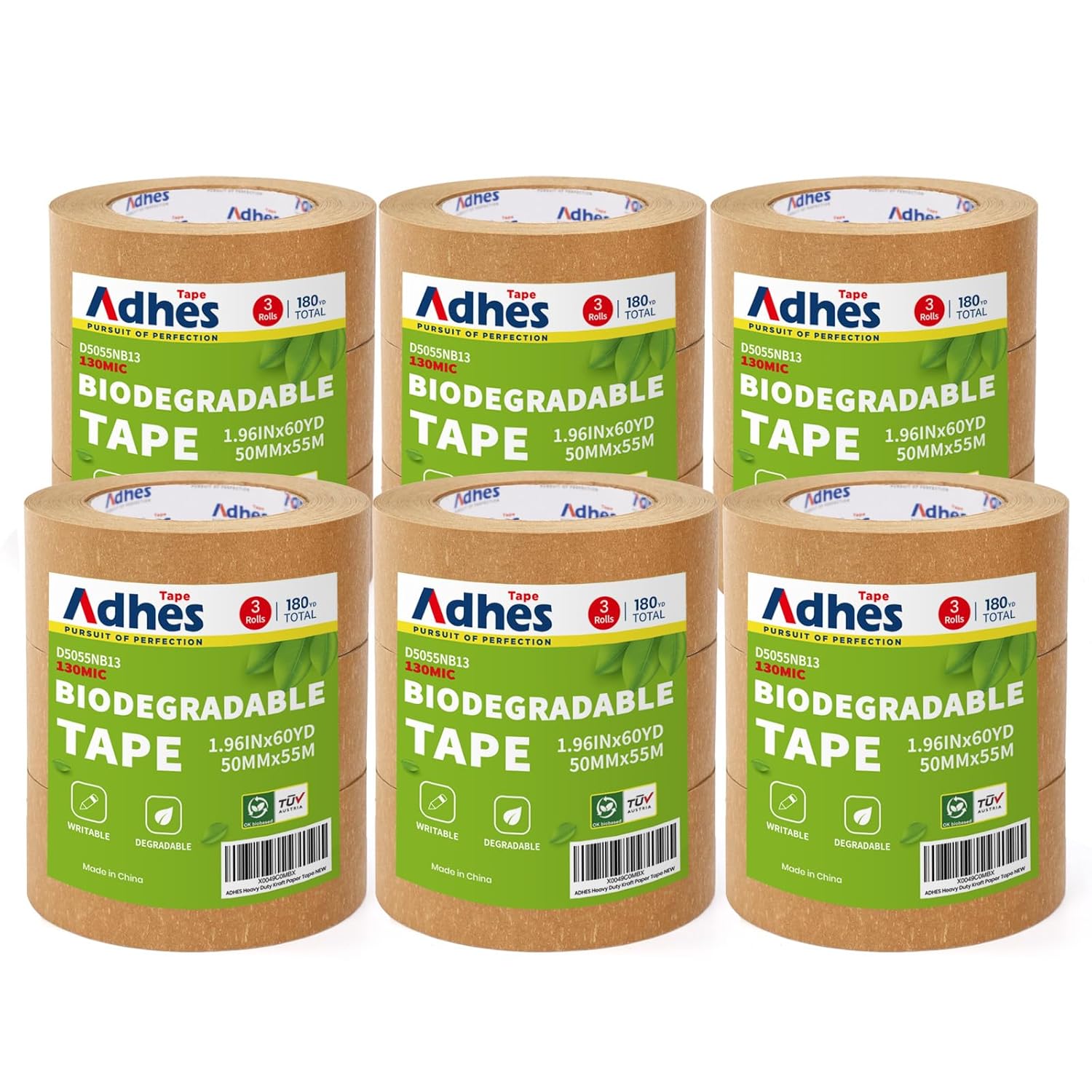 ADHES Kraft Paper Tape, 2 Inch x 60 Yards x 18 Rolls, Biodegradable Paper Packing Tape Writable & Uncoated Brown Shipping Tape for Shipping, Moving, Sealing