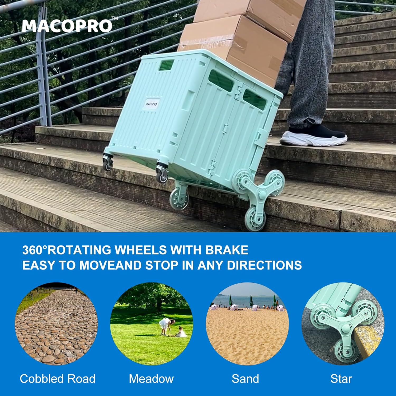 - 【Stair Climbing Cart】MACOPRO folding shopping cart is equipped with two stair climbing wheels and two detachable 360° rotating noiseless wheels. This stair climbing wheels features a unique 6-wheel design that effortlessly glides up and down stairs.