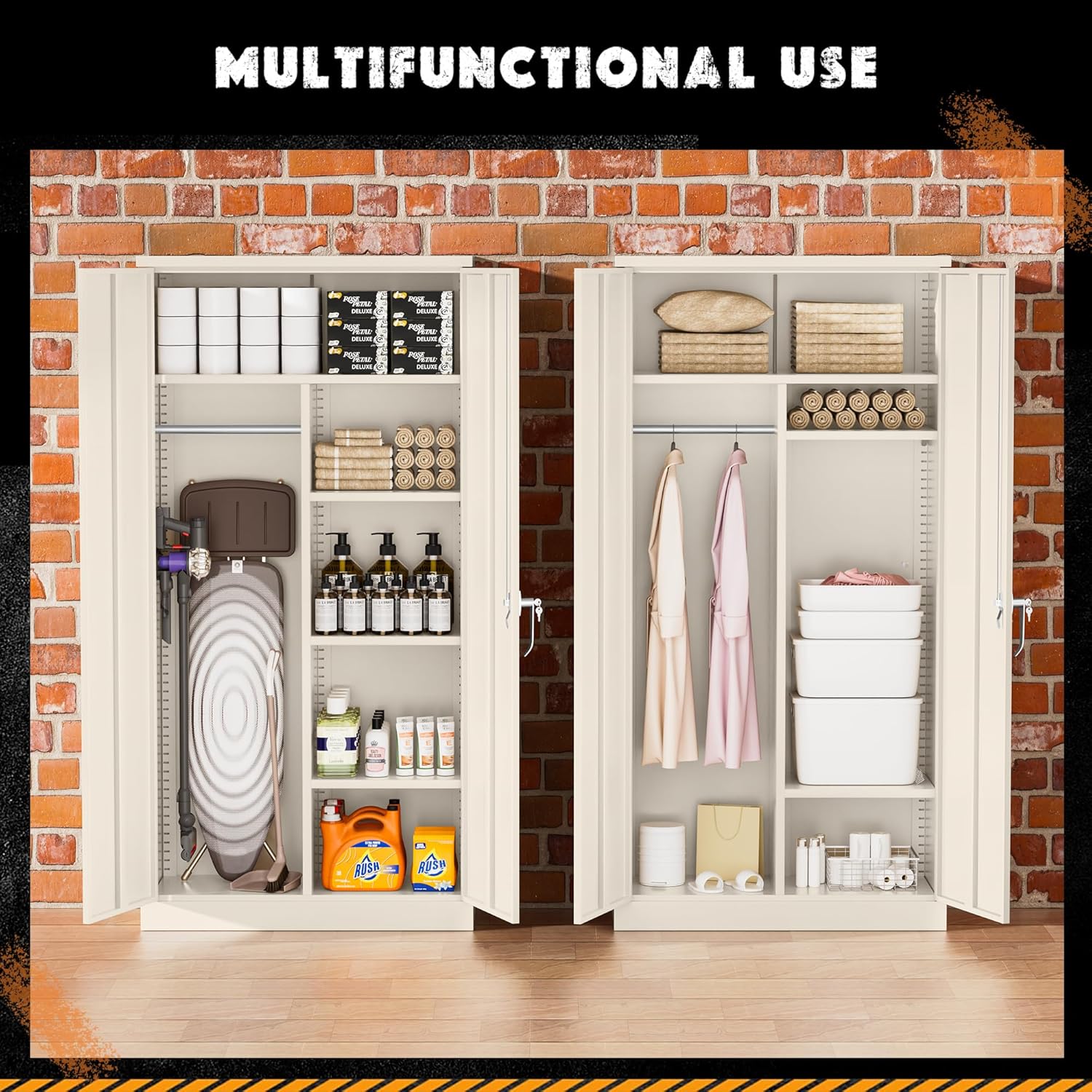 - 【Heavy-Duty Metal Structure】 Greenvelly heavy duty metal closet storage cabinet is made of cold rolled steel with a thickness of 0.8mm and reinforced construction which makes the black metal cabinet with lock sturdy and durable. The garage tool cabinet also adopts a new high-quality powder coating, which is scratch resistant, wear-resistant and easy to clean. The steel locking bedroom armoires cabinet is more safe and reliable, and has no peculiar smell.