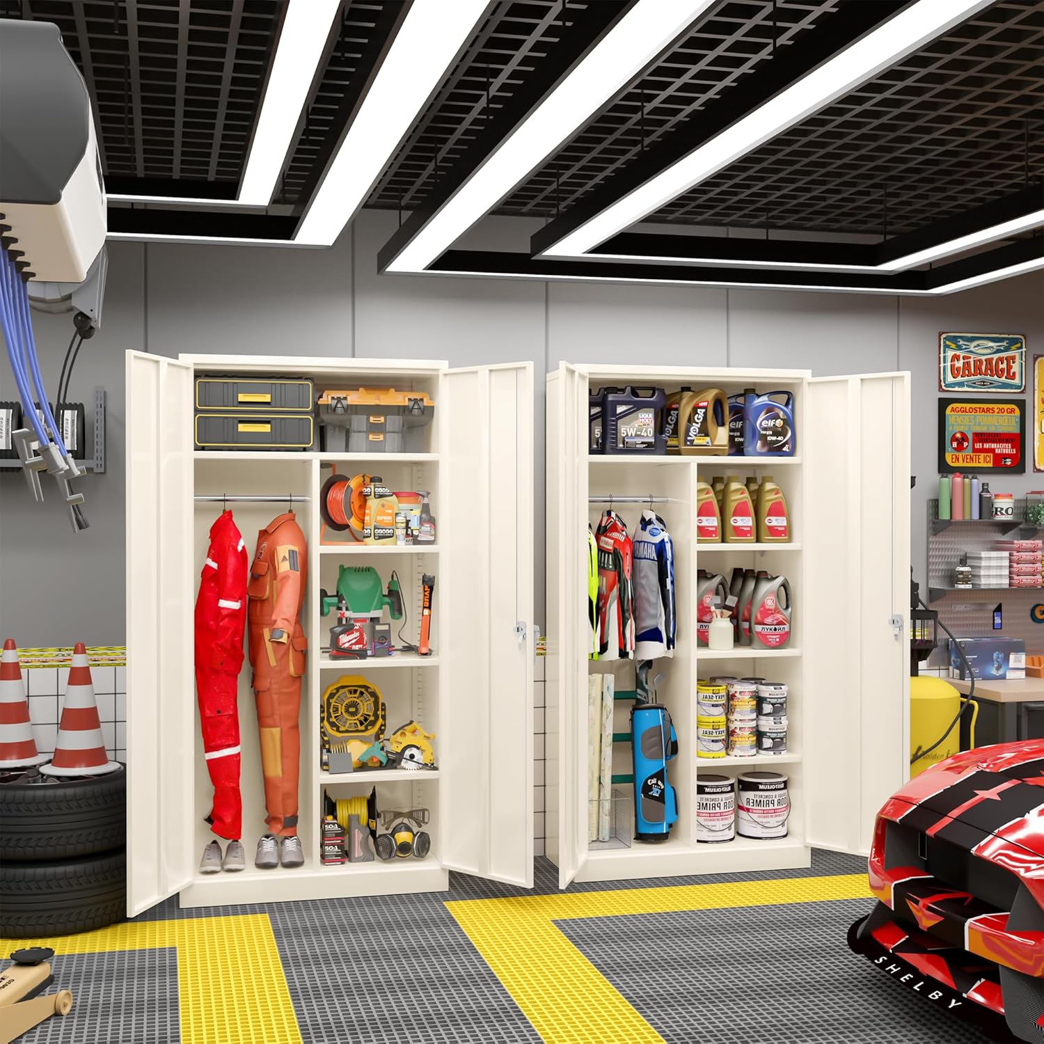 - 【Design to Prevent Tipping】Greenvelly 2 door metal cabinets 2024 have added a design to prevent tipping and can be more securely fixed to the wall. Prevent the cabinet from tipping forward due to heavy objects, protecting your and family's safety. bedroom armoires cabinets for storage with doors can also ensure the storage of more and heavier tools in areas such as classrooms, bedroom, tool rooms, and car repair shops.