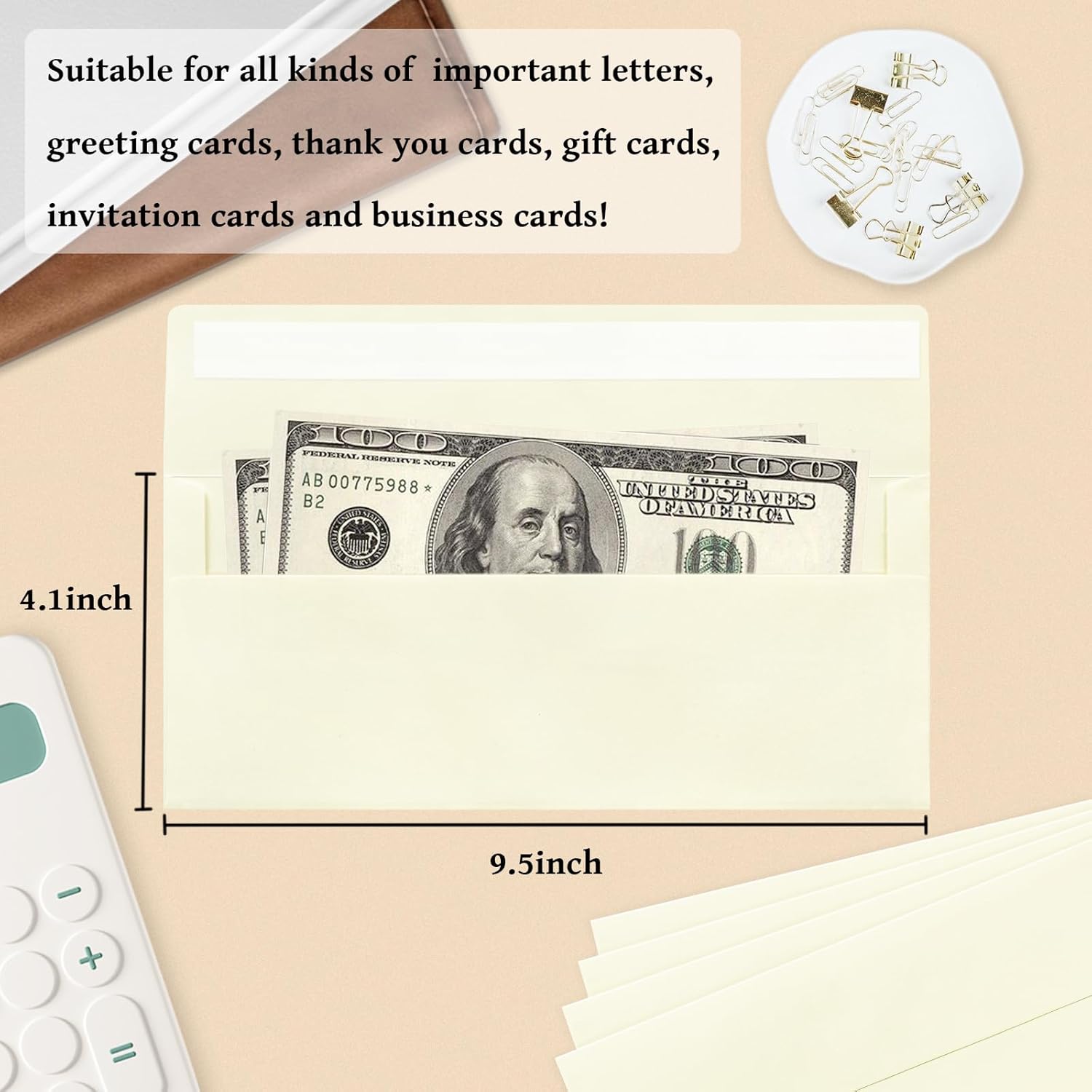 - 【Ivory #10 Business Envelopes】These #10 business envelopes feature a ivory color. The envelopes kit contains 200 pieces 4 1/8 x 9 1/2 Inches ivory envelopes, perfect for your office or home purposes
