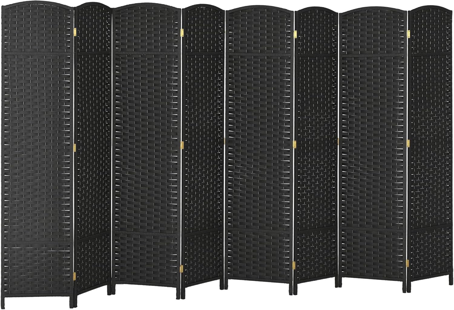 HOMCOM Room Divider, 8 Panel Folding Privacy Screen, 5.6' Tall Freestanding Wall Partition for Home Office, Bedroom, Black