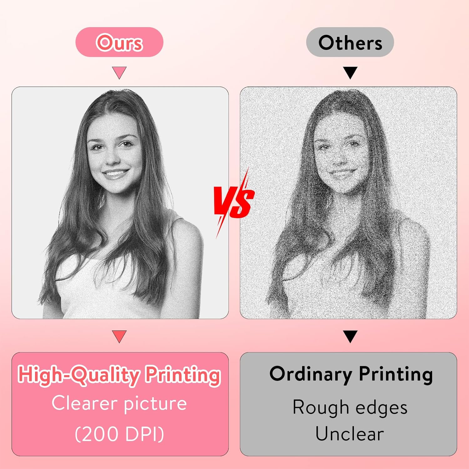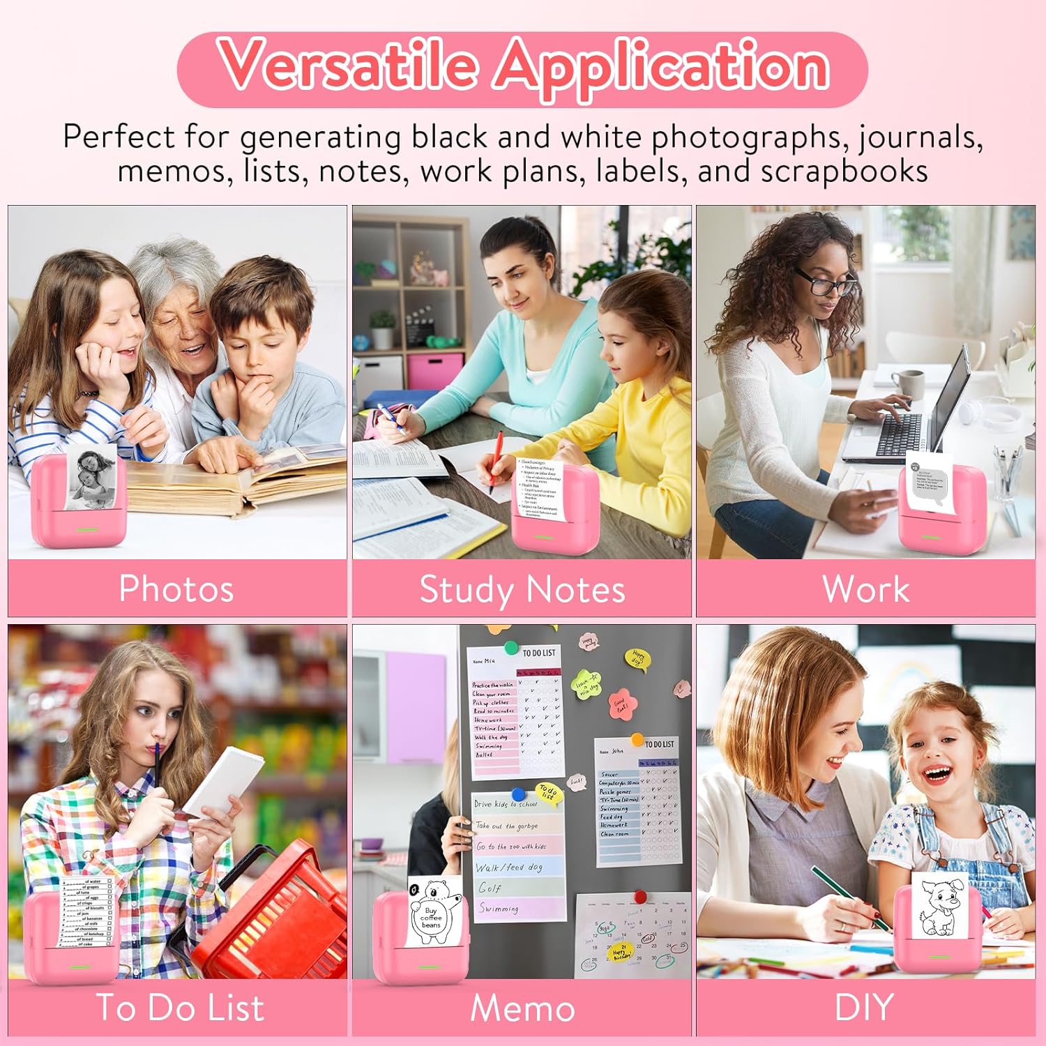 - Multipurpose & Perfect Gifts: This inkless printer for printing black and white photos, memos, labels, cute pet stickers, QR codes, etc. Information and images on the phone screen can be printed instantly. If you need a clearer print, please select the original image and darken the print. Improve efficiency by helping you organize and summarize work plans, shopping lists, and more. The ideal birthday, anniversary, Christmas gift for anyone.