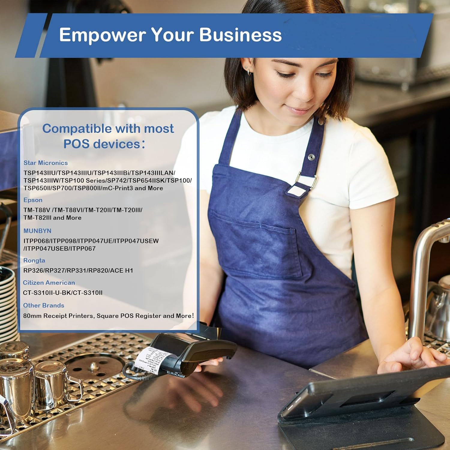- Strong Compatibility:3 inch thermal paper rolls are fits for Clover Flex Mobile POS, Clover Mini, Square Terminal Credit Card Machines, Royal Alpha, Nurit, Omni, VeriFone VX520, Remote Terminal Citizen CBM262, CBM270 EBW Auto Stik 950 EMCO, Ingenico ICT220, ICT250, First Data FD400, and more