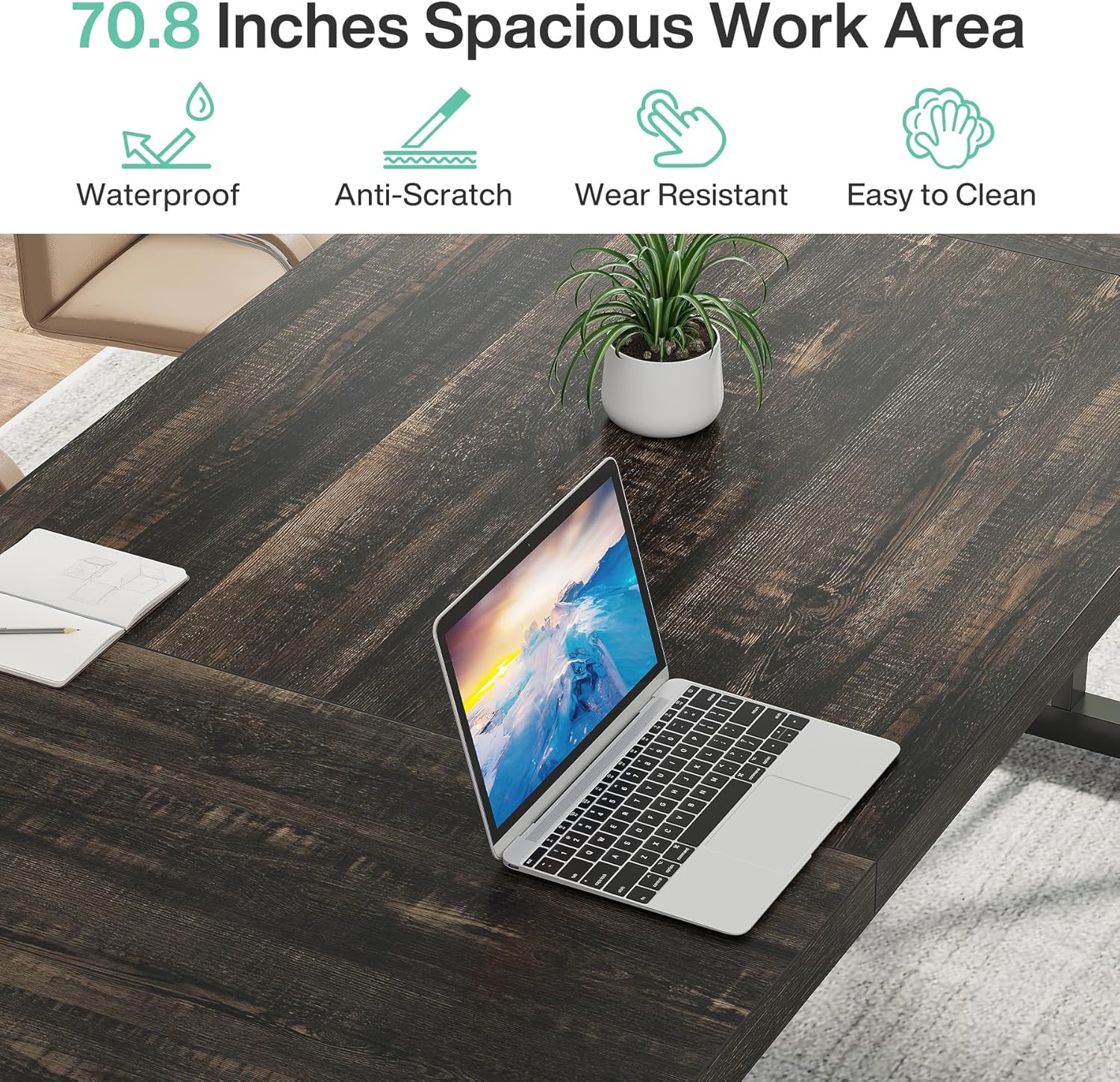 Tribesigns 70.8-Inch Executive Desk, Large Computer Office Desk Workstation, Modern Simple Style Laptop Desk Study Writing Table Business Furniture for Home Office (Black Oak, 70.8 Inch)