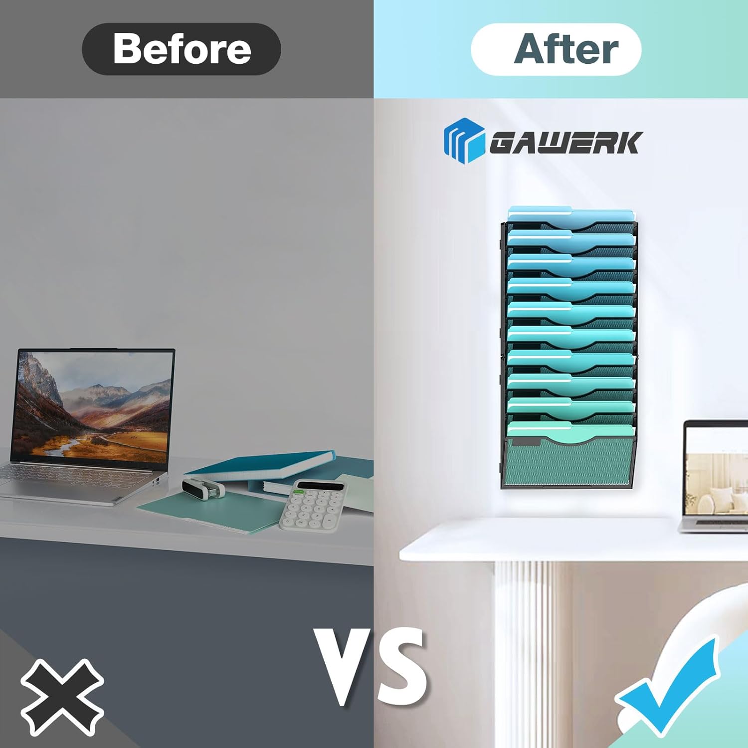 - Easy to Install - This mail organizer wall comes with mounting screws, you only need to drill 2 holes to mount it to the wall. And Our 10-tier wall paper organizer has an elegant look design with upgraded powder coat finish, anti-oxidation and anti-rust, which is enough for many years.