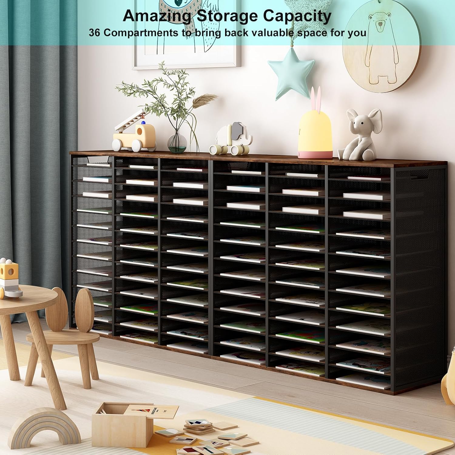- ▶Amazing Storage Capacity and Space-saving. The literature organizer has 36 compartments, which can help you sort, store and organize literature, magazines, comic books, files, student assignments, binders, catalogs, diaries, papers and documents on your desk or counter quickly and easily and get you valuable workspace back