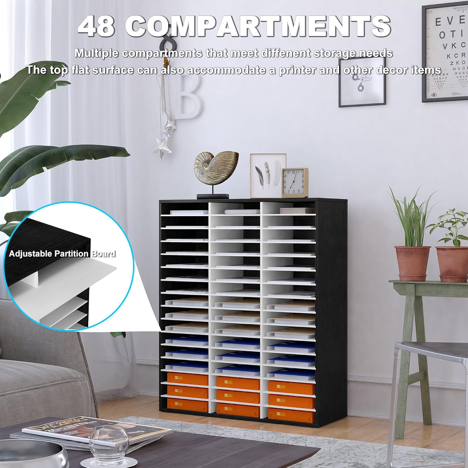 Mail Sorter Wood Literature Organizer, Student Mailbox for Classroom, Desktop Bill Paper sorter for Office Home School, 48 Compartments, White