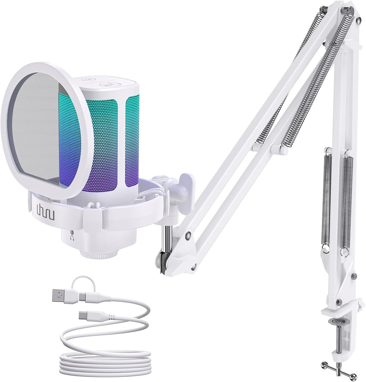 - Package Contents: The UM2S package comes with a gaming microphone, Boom Arm Stand,5.9ft USB A&C to USB-C 2-in-1 Cable, Shock Mount, Pop Filter, and User Manual