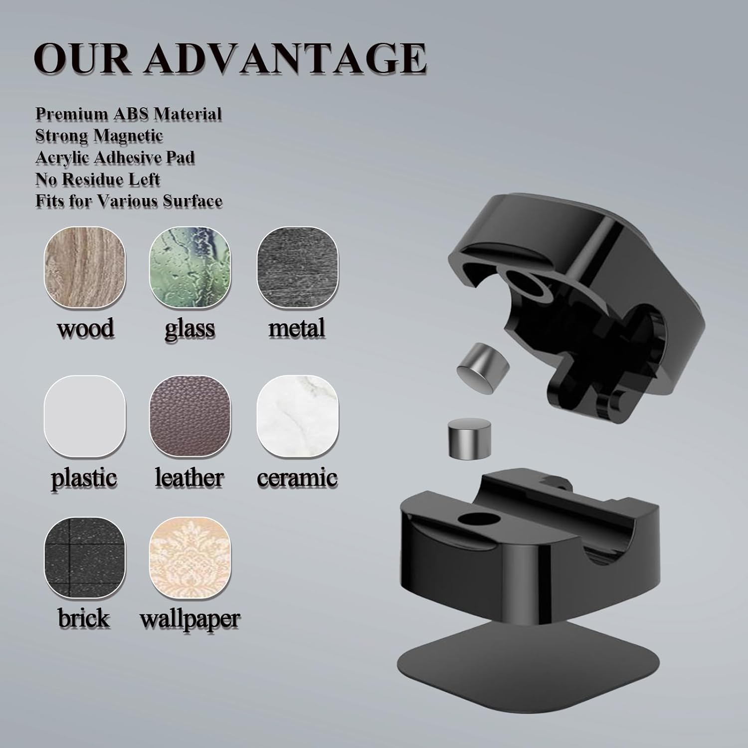 - UNIVERSALLY ATTACHABLE: The professional 3M adhesive tape is adhesive engough for you to install the clips securely on all common surfaces, including wooden tables, glass, ceramic tiles, plastics and even your car dashboard while at the same time, leaves no any residue when removed.