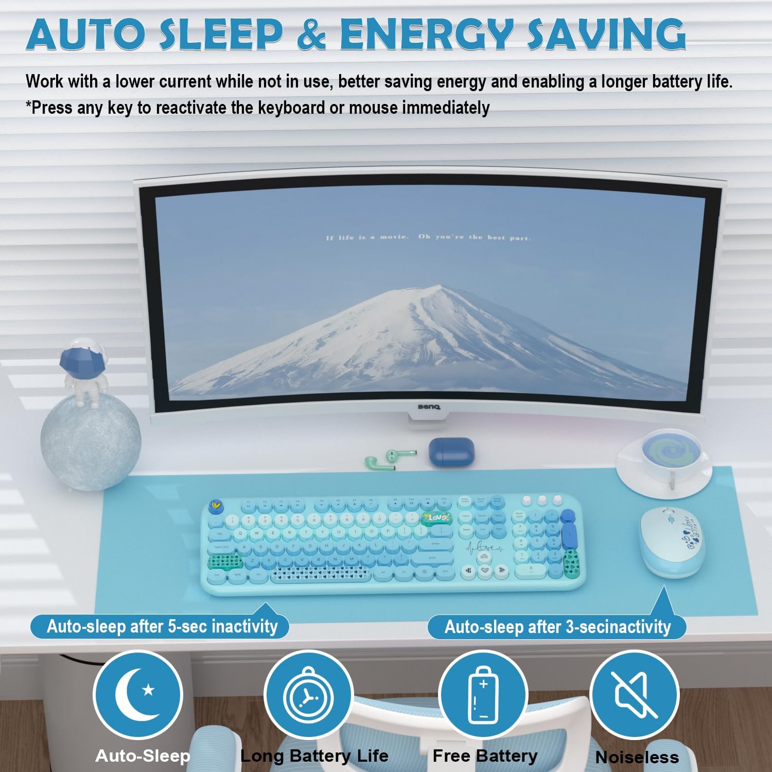 - Retro Floating Round Keycaps: Colorful keyboard and mouse wireless with vintage typewriter-inspired retro floating rounded keycaps, gives you the most comfortable typing experience and adds some much needed spunk to your desk; the crisp key sound takes you back to the industrial era, and the independent round keycaps facilitate finger positioning; the floating keys under your fingertips are comfortable and skin-friendly