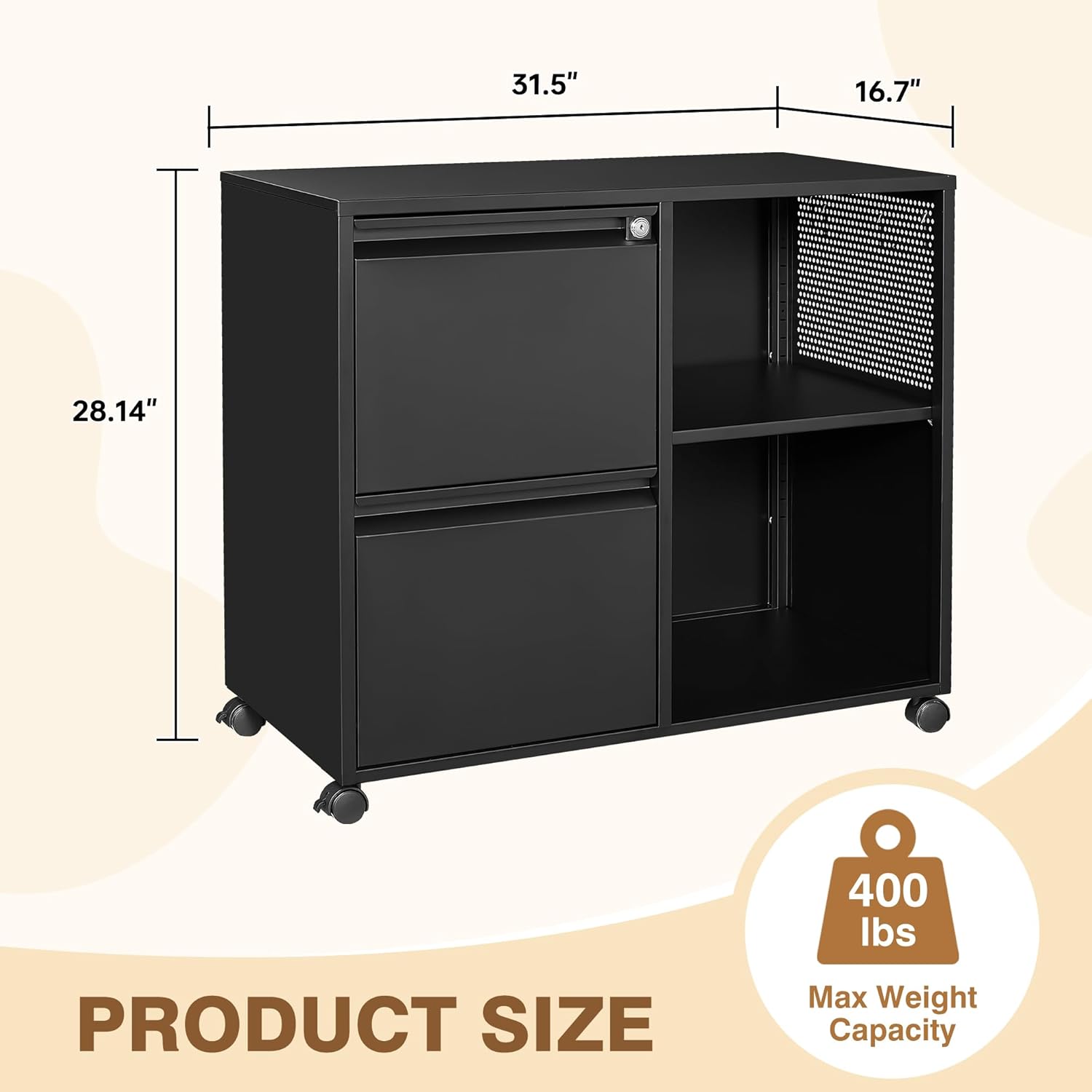 - 【Premium Metal Material】: This steel vertical filing cabinet is made of thick, high-strength, cold-rolled solid all-steel material to ensure its strength and prevent deformation. It can hold up to 150 pounds and is perfect for your printers and scanners. Additionally, the cabinet's surface is treated with a smooth coating that prevents scratches or marks on the exterior, making cleaning effortless.