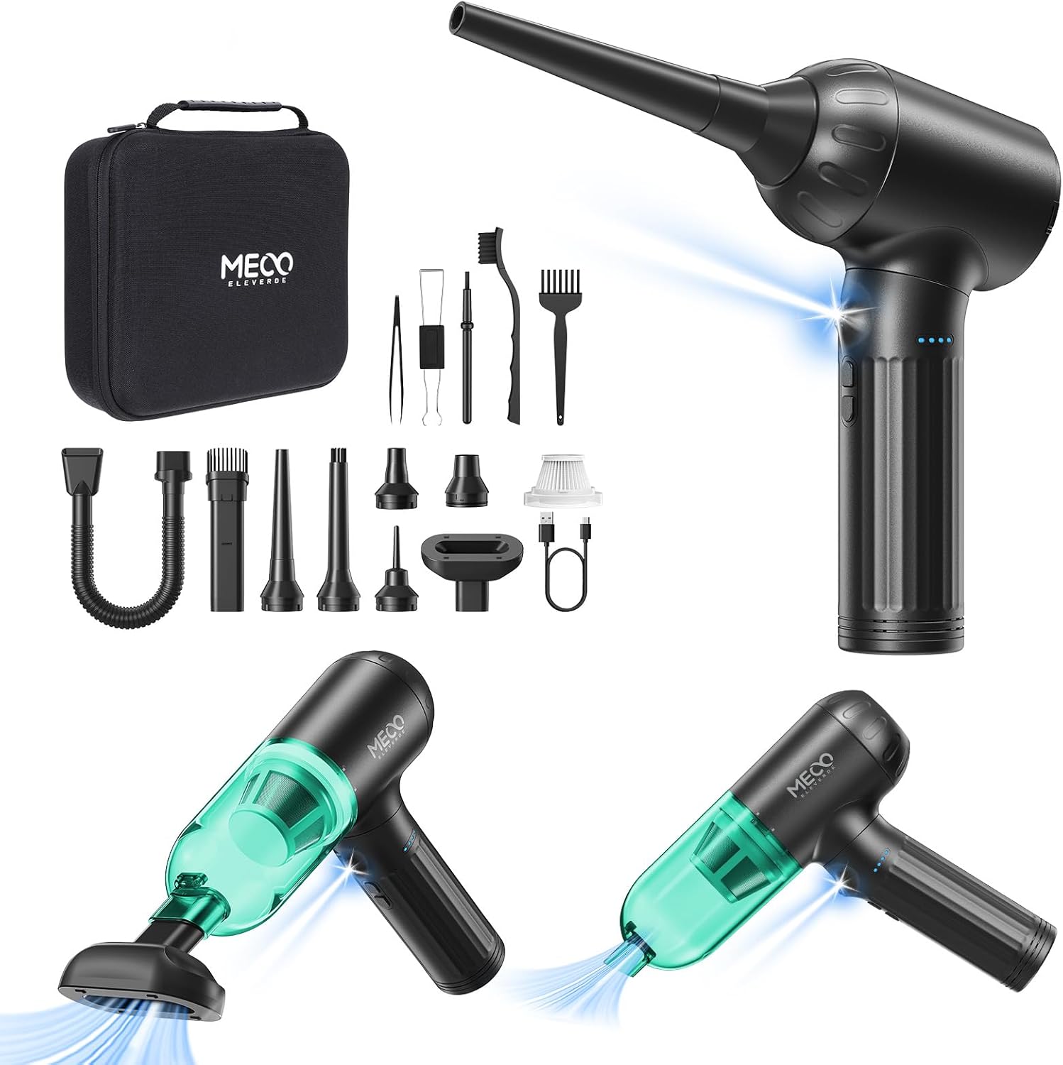 MECO ELEVERDE Compressed Air Duster Electric, 130000RPM 4in1 Air Duster Vacuum/Mini Vacuum/Air Blower & Pump, 3 Gear Brushless Motor with LED Light for PC, Keyboard, Car, Carpet (Green)