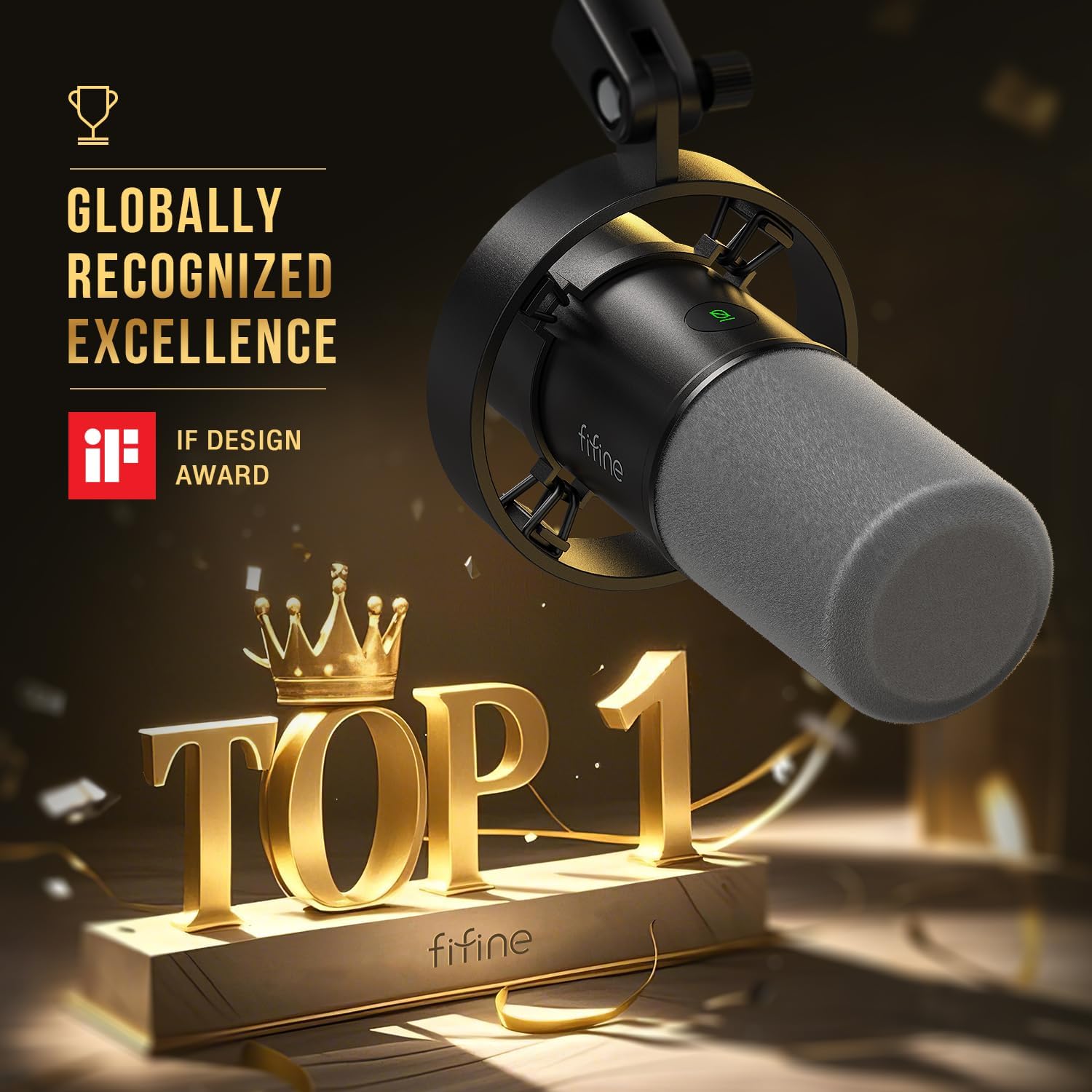 FIFINE K688 Podcast Microphone Kit, USB/XLR Dynamic Microphone with Boom Arm for PC/XLR Mixer, Gaming Mic with Mute Button, Headphone Jack for Vocal, Voice-Over, Streaming, Music Recording -K688CT