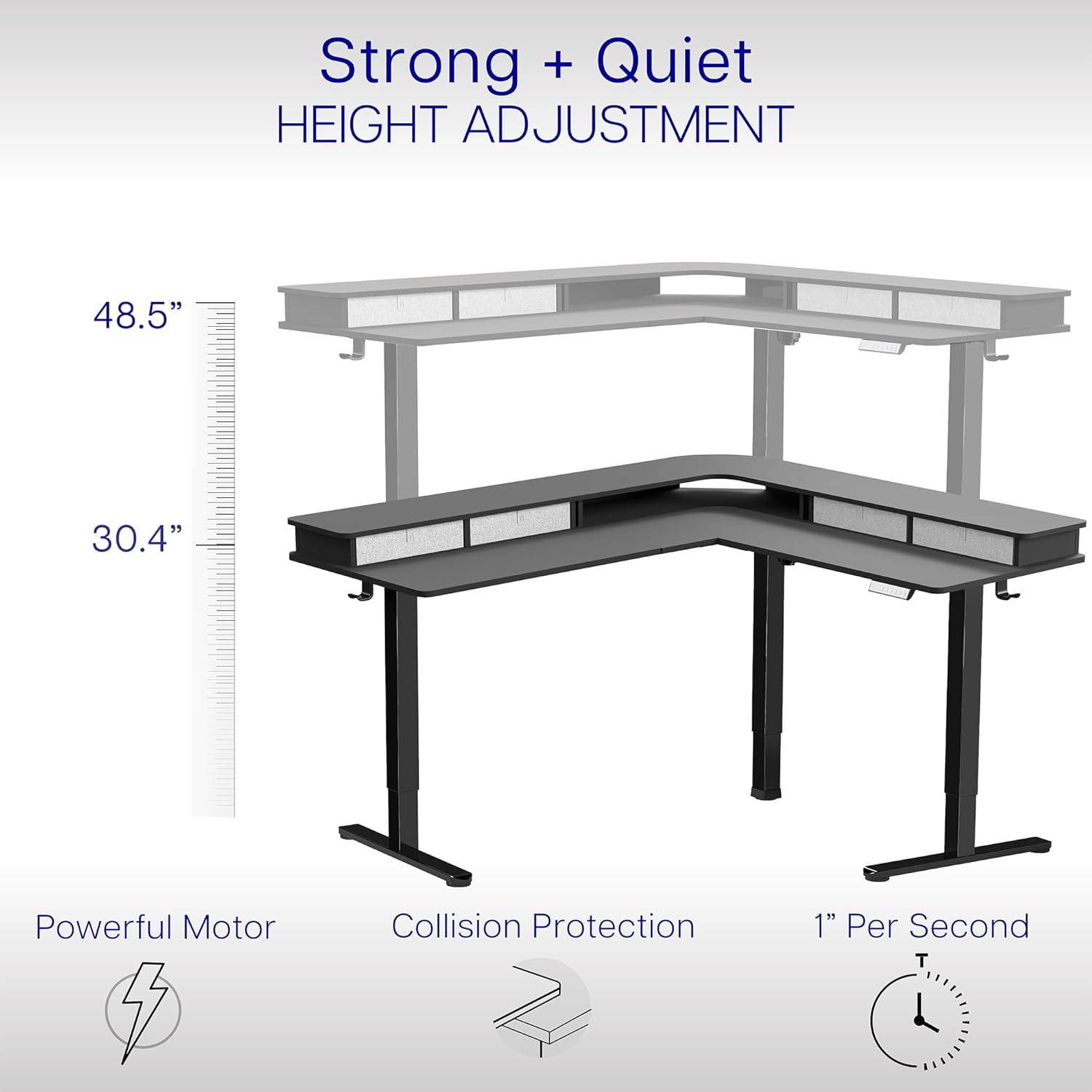 - Powerful Electric Motor: Enjoy a height range of 30.4” to 48.5” (main desktop) with the powerful single motor and strong 2.4” wide legs using precise telescopic height adjustment.