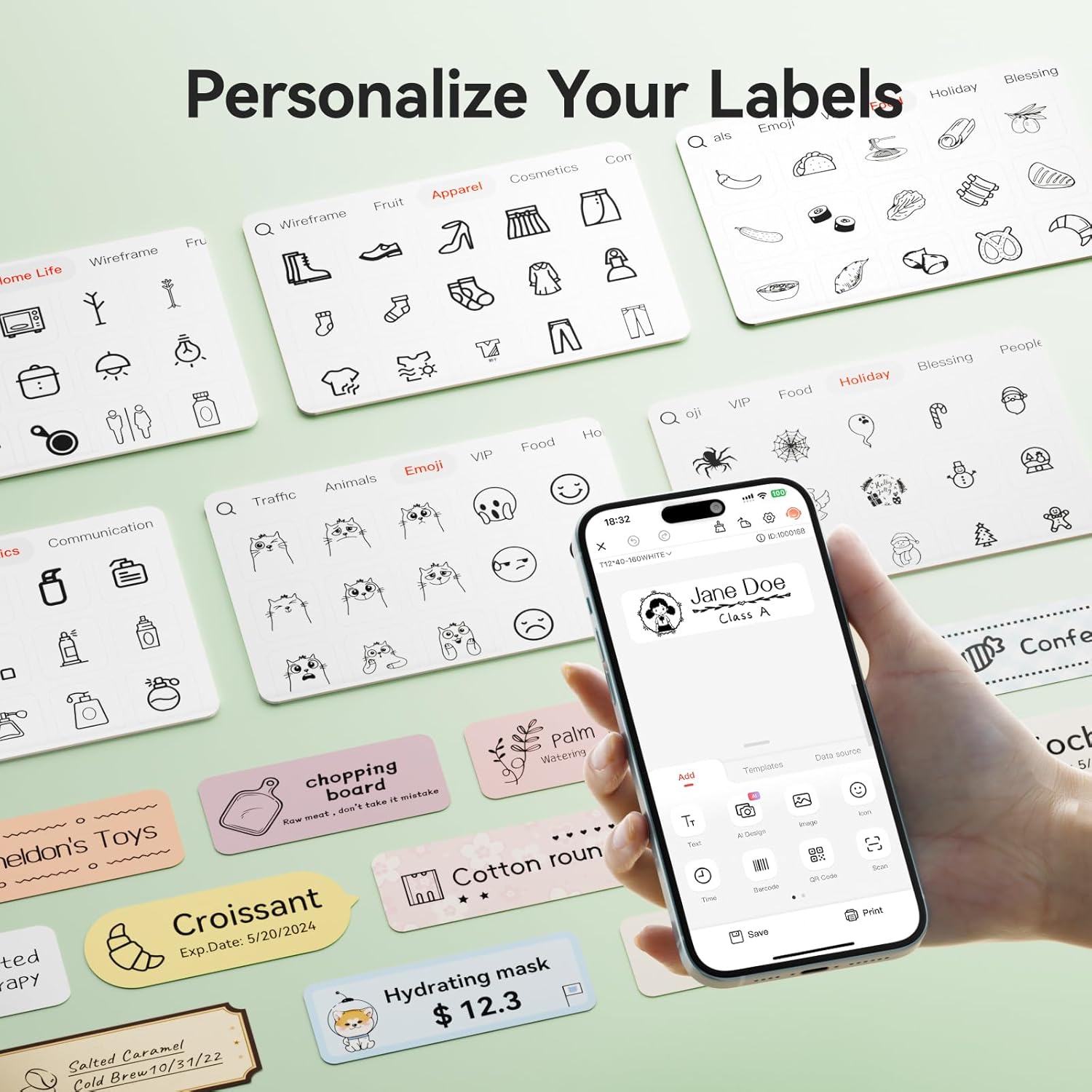 - 【Upgraded Print Quality】Label Makers with BPA-Free Direct Thermal Technology. Equipped with high-speed chips and 203 DPI, you can enjoy high-definition without relying on ink or toner. Built-in durable and recharge battery for long working time, slide into your pocket, easy to carry anywhere.