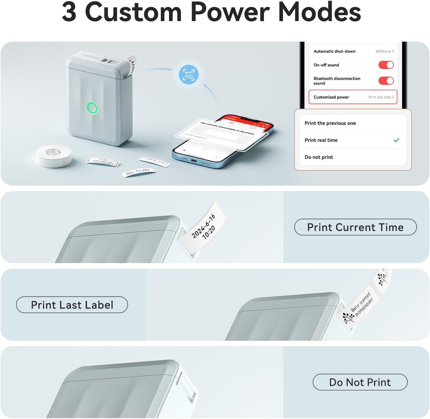 - 【Label Options and Organization】With Intelligent Identification technology, this mini label maker can automatically recognize the label you put in, support a variety size and kind of label paper, such as clear, colorful, cute gift tapes and round labels. The label refills is waterproof and Oil-proof, which can be widely used in Home Kitchen and School. (This label maker is monochrome printout, which only prints black text. We can create color labels buy using color pattern label tapes.)