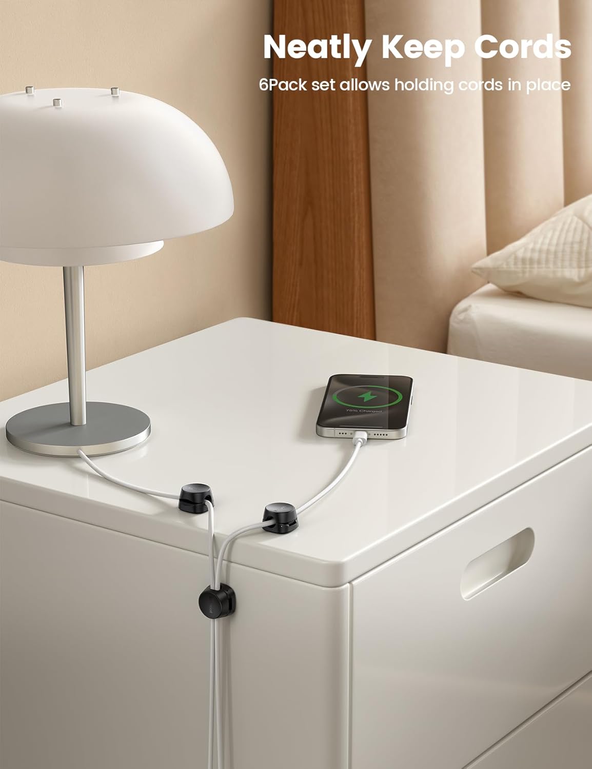 - Spring Locking Design : Our cord holder clips feature an innovative 𝐬𝐩𝐫𝐢𝐧𝒈 𝐨𝐩𝐞𝐧-𝐜𝐥𝐨𝐬𝐞 mechanism, combine with the unique design of the spring's 60° rotation shaft and thoughtful angled opening. This cord holder organizer allow you to place and remove your phone charging cords, HDMI cords, household wires qucikly and securely with just one hand. [Installtion Tips] After sticking the cord holders, please WAIT for 30 minutes before using for better adhering effect