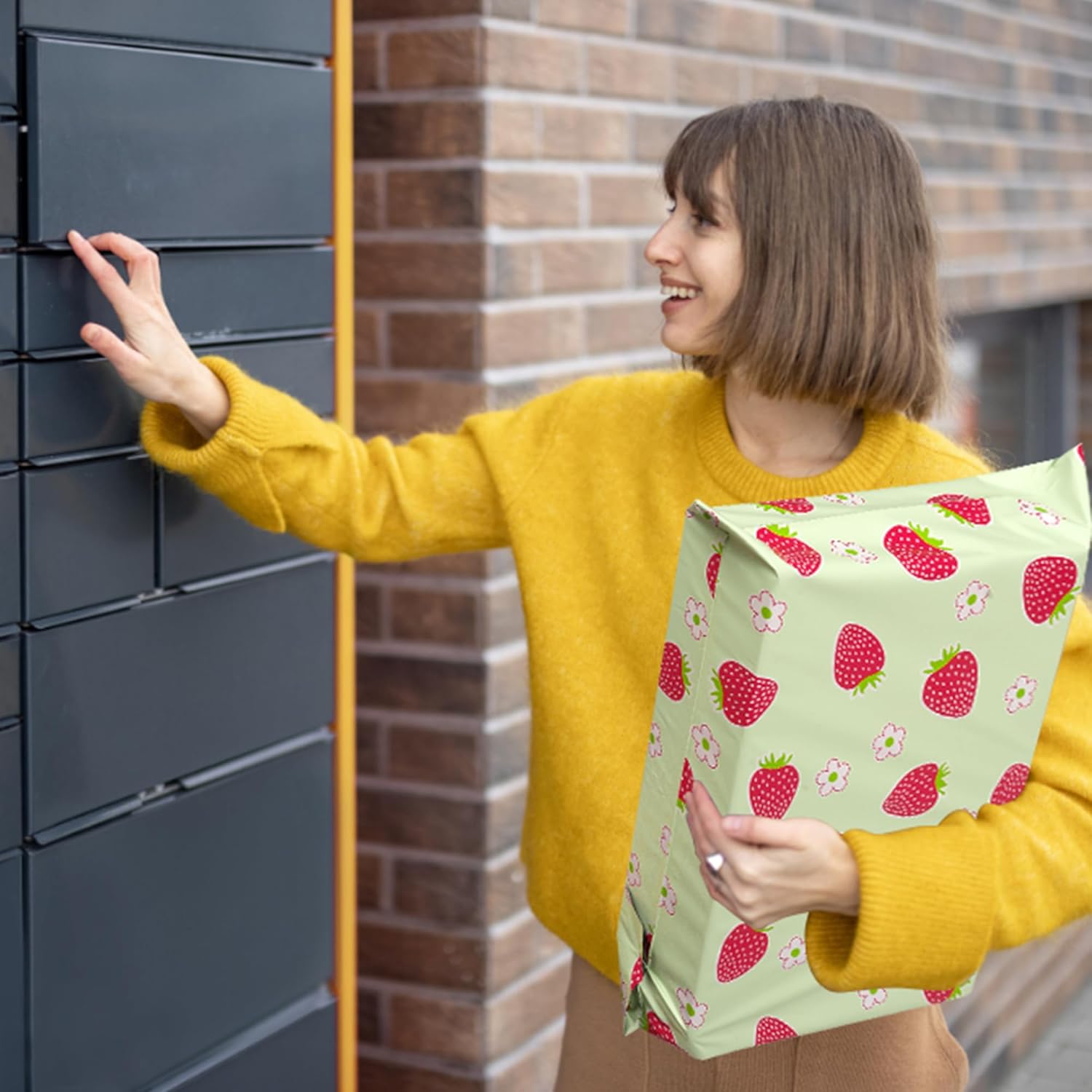 Poly Mailers 12x15.5 Inch 50 Pcs - Strawberries printed Shipping Bags, 2.4mil Thickness, Waterproof and Tear Resistant Mailing Envelopes, Self-Sealing Packaging Bags for Small Business