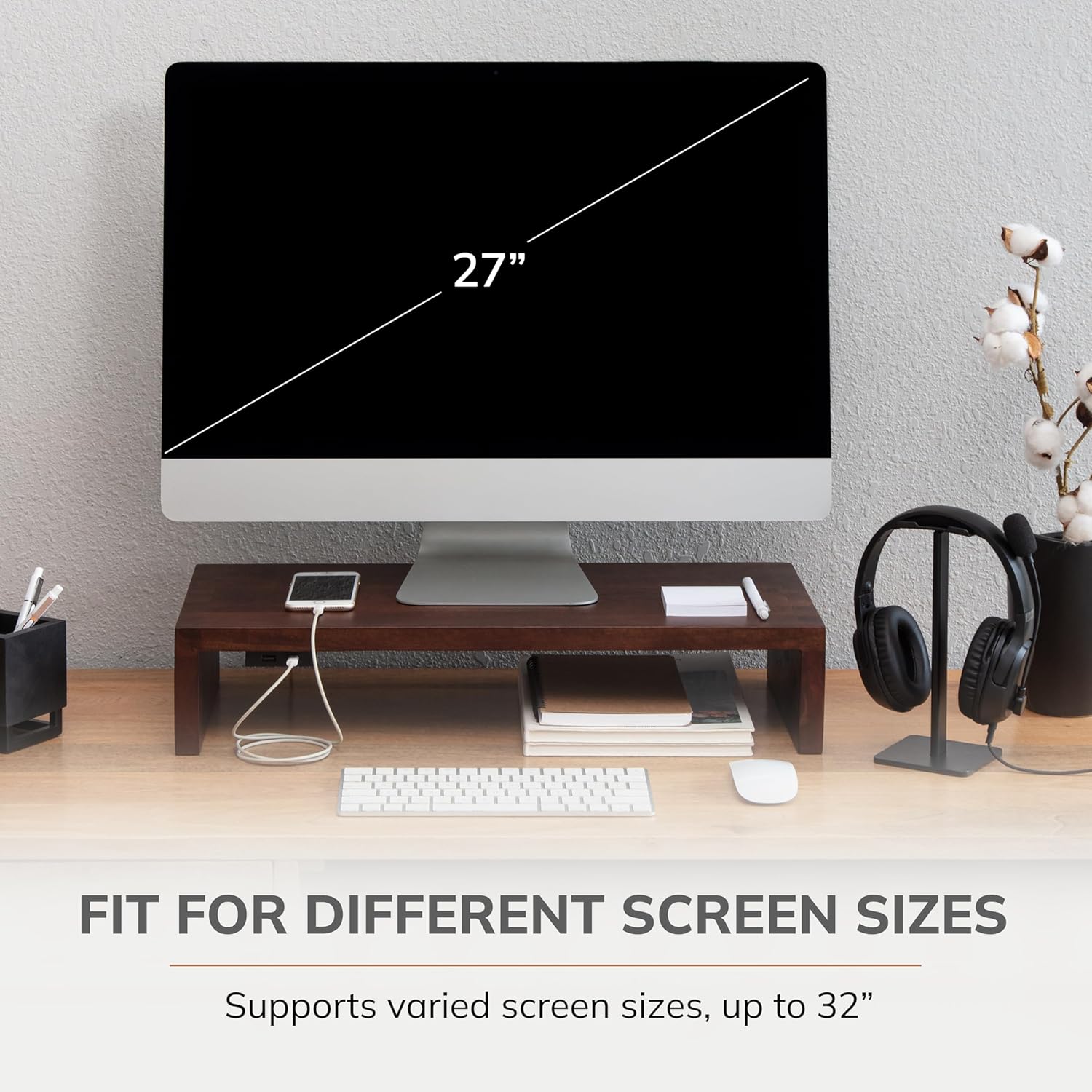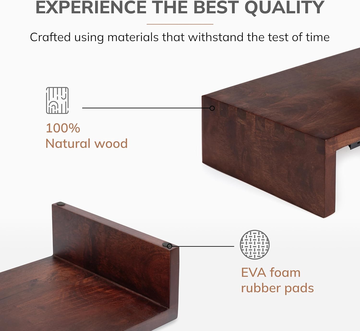 - Ergonomic Computer Riser: Prioritize comfort with this thoughtfully designed computer riser. As one of the best computer risers for desk monitors, the monitor stand wood construction offers an ideal viewing angle for maximum productivity.