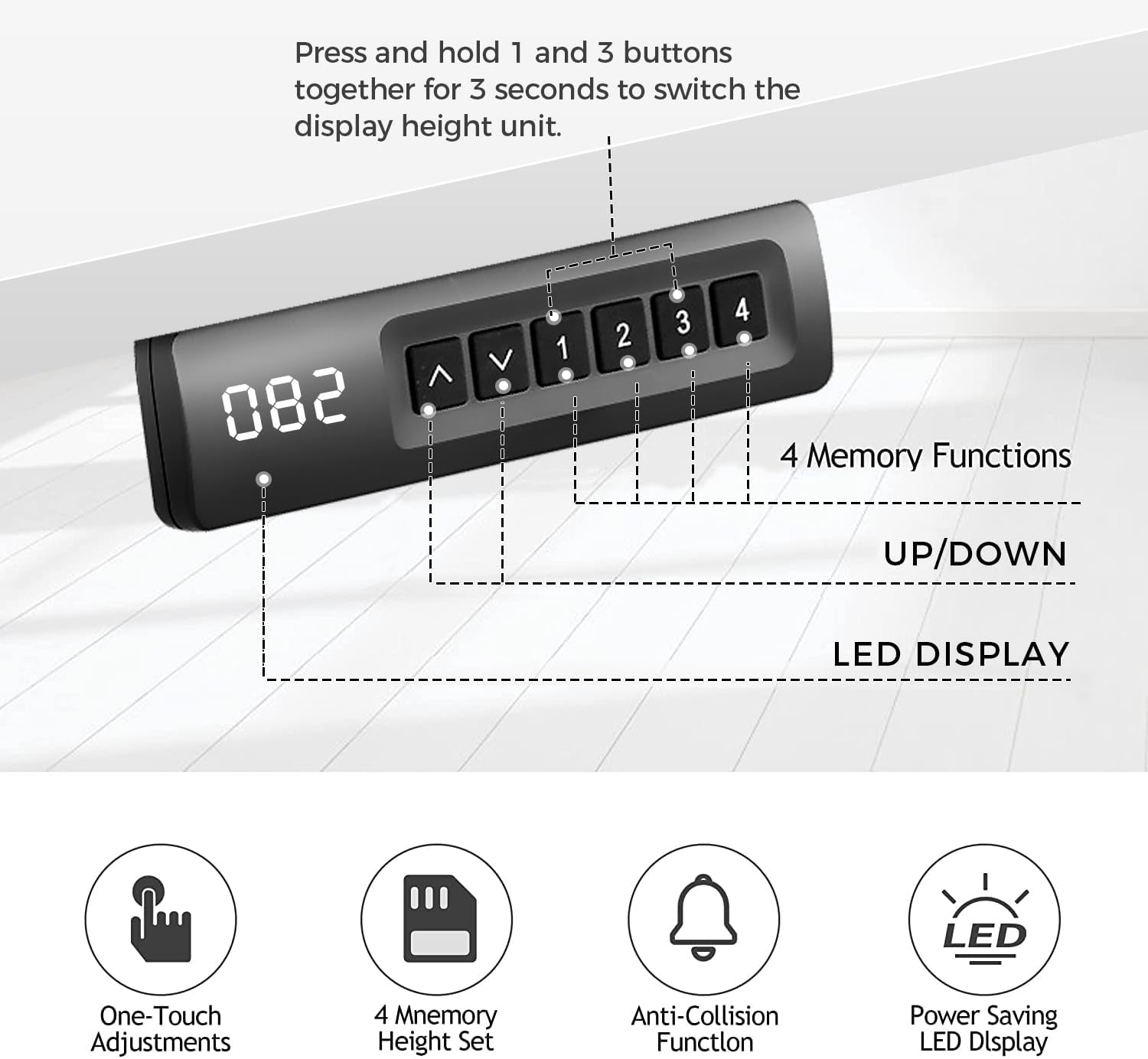 - 【Ergonomic Home Office Desk】- Prolonged sitting can strain your body, leading to back and neck issues. Our standing desk allows seamless transitions between sitting and standing with a single touch, reducing fatigue and enhancing focus