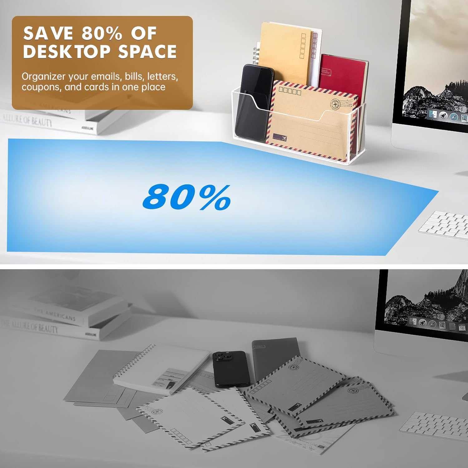 - 【CLEAR ACRYLIC】- This mail organizer for desk is made of acrylic, transparent and intuitive, sturdy and durable. You can directly see your unpaid bills. It goes perfectly with contemporary style.